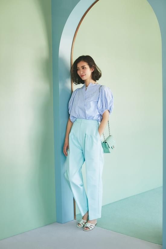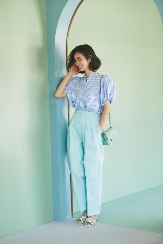 スカート、パンツどちらにも合わせやすく、ウエストもイン/アウトどちらでもバランスの良い丈感。