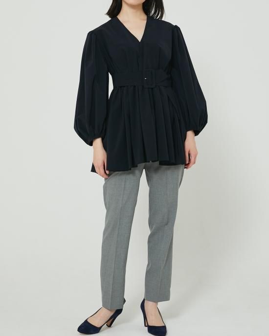 ベルトの有無で違った雰囲気を楽しめるブラウス。