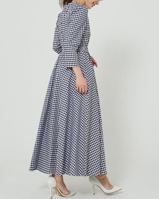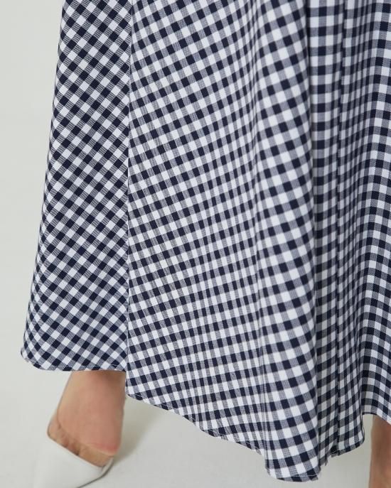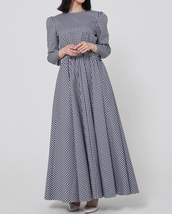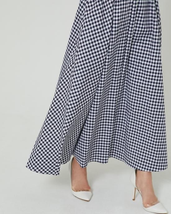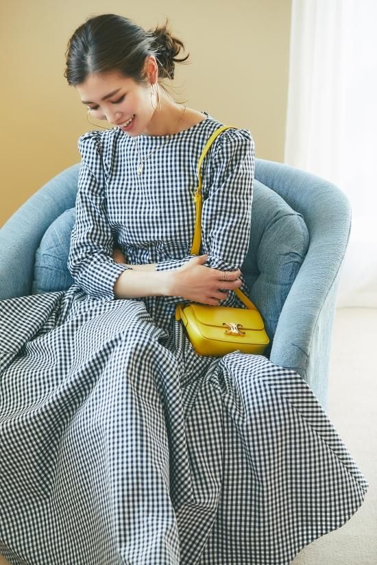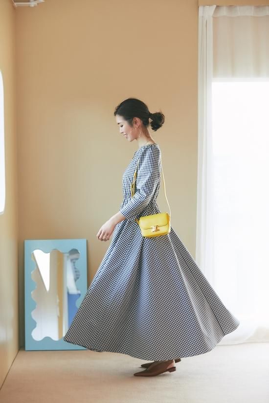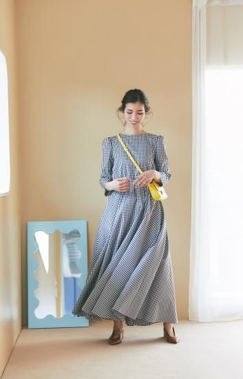 スカート部分は分量がたっぷりなので1枚でドラマティックな雰囲気に。ややハイウエストなのでフラットシューズでもスタイルアップして見えます。