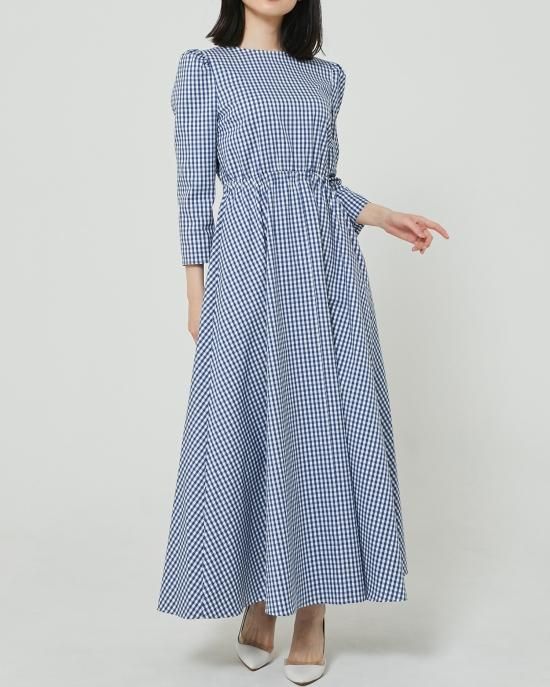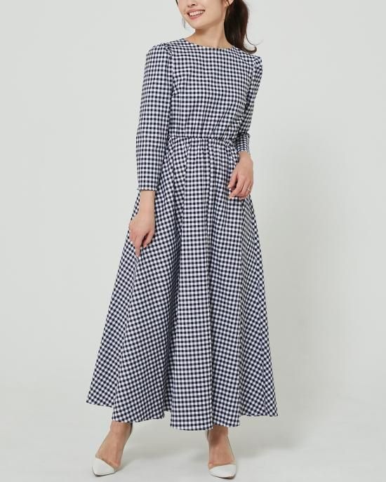 SEVEN TEN by MIHO KAWAHITO で定評のある美しいラインのワンピースです。ネイビーとブルーの2色展開。