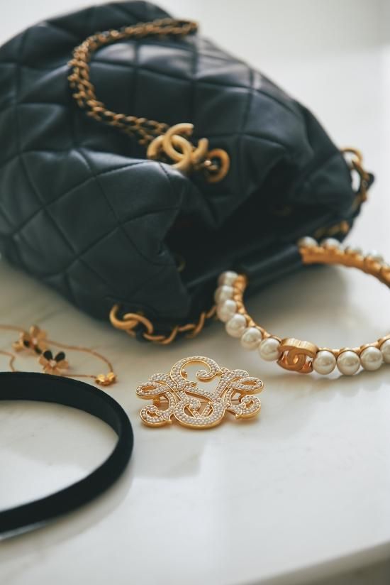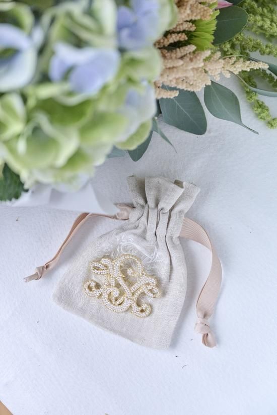 シンプルながらも存在感のある、オリジナルのロゴデザインに隙間なくパールを敷き詰めました。