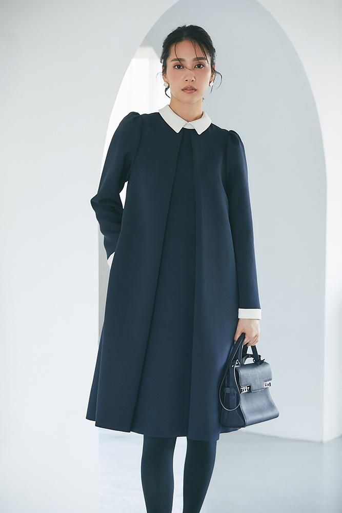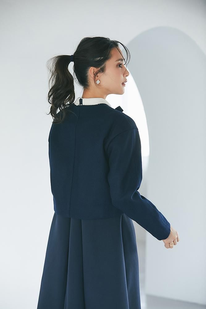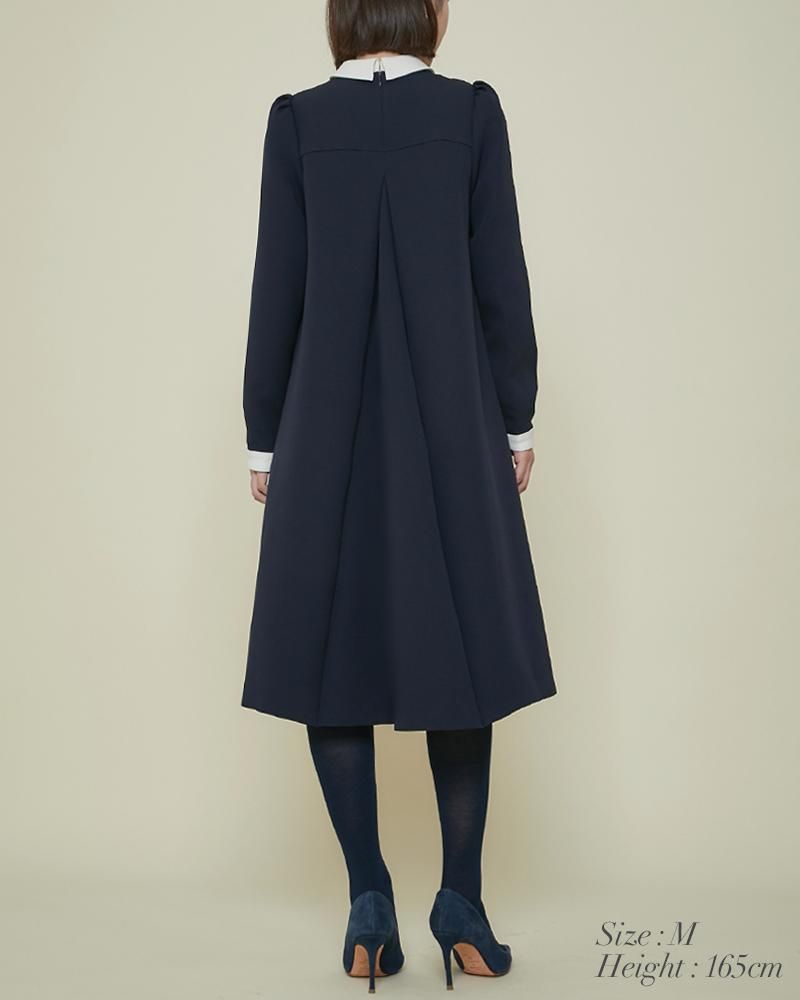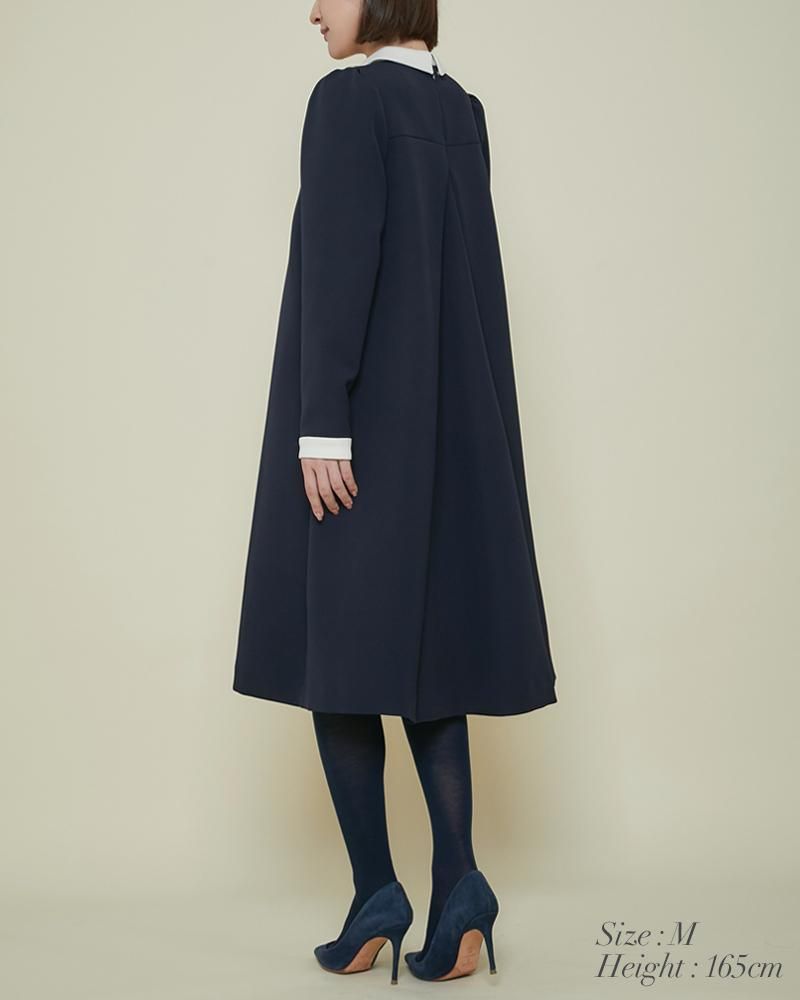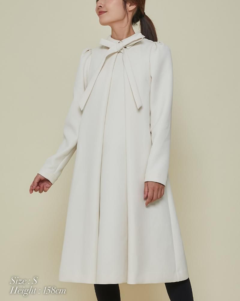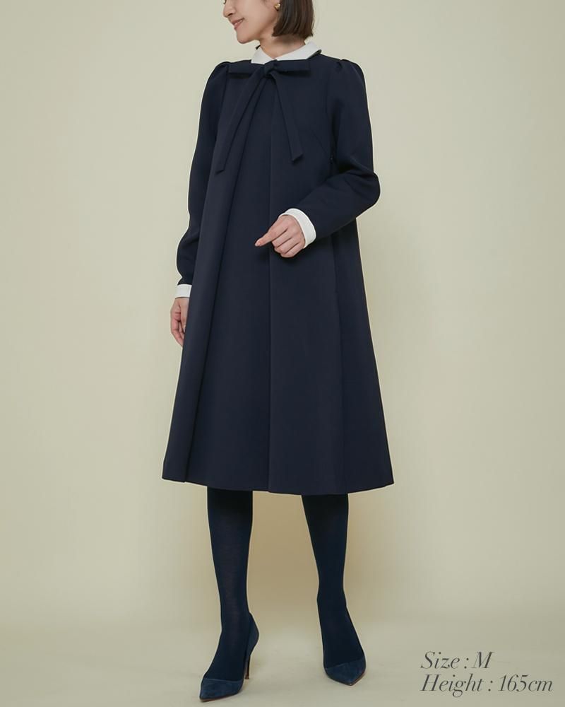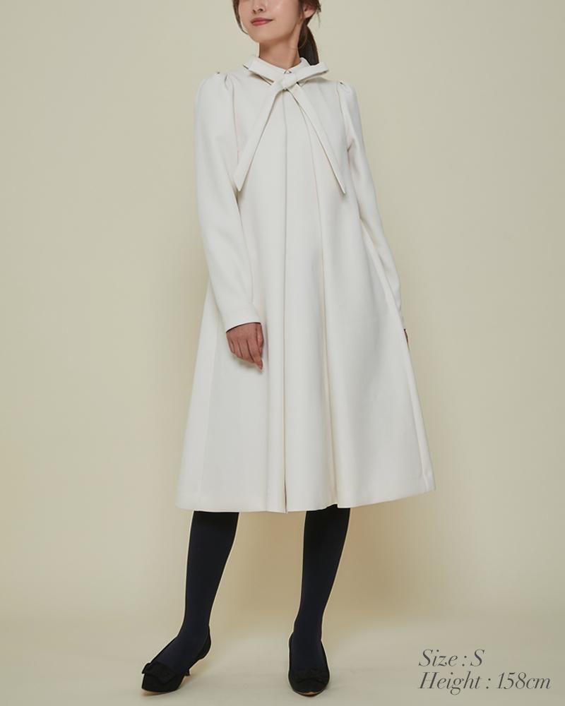 エレガントなAラインシルエットをタックとハリのある素材でモードに昇華させたボウタイワンピース。