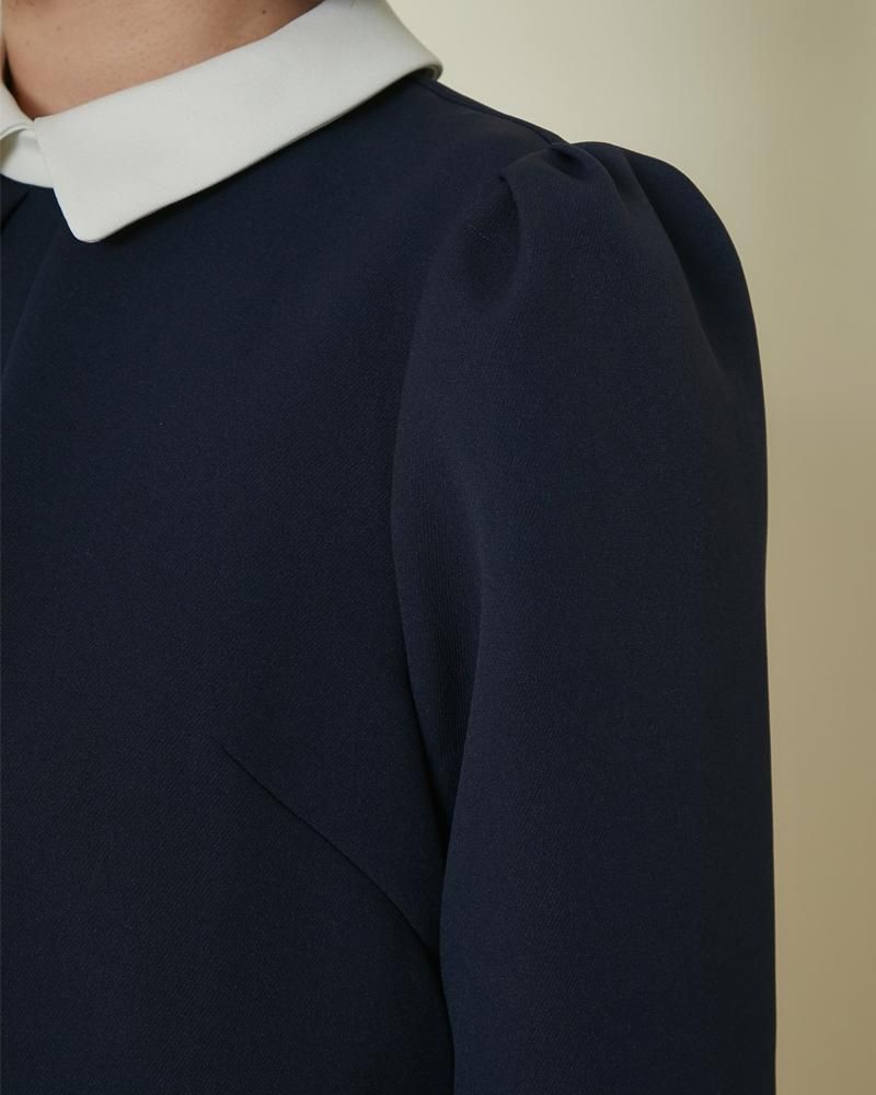 パフスリーブと小さい襟が女性らしい品の良さを添えてくれます。