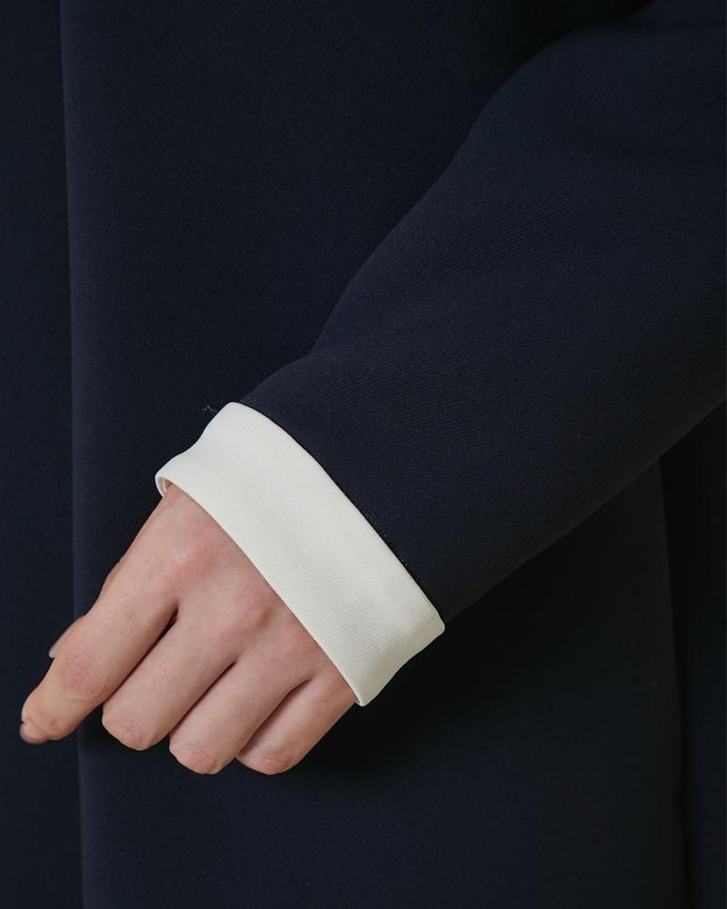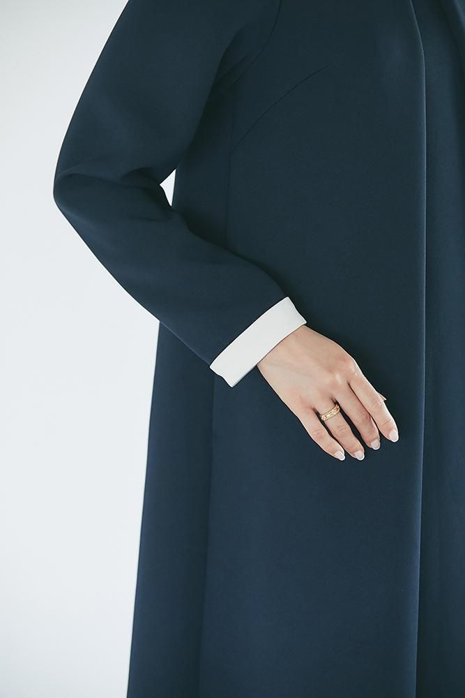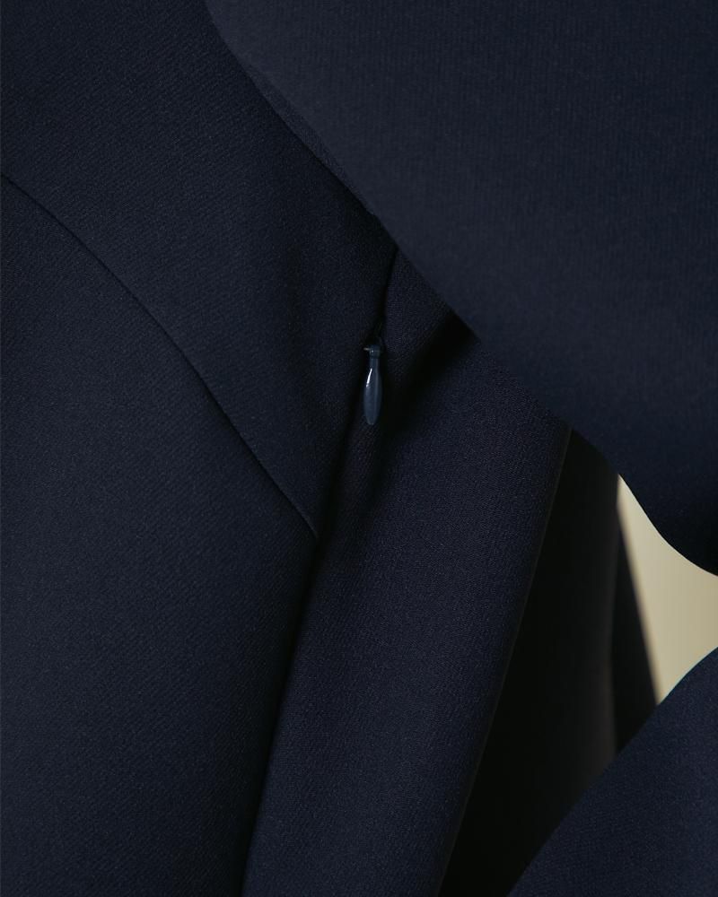 フロントとバックに大きくタックをいれ、立体的で動きのある、どの角度からも着映えするデザイン。