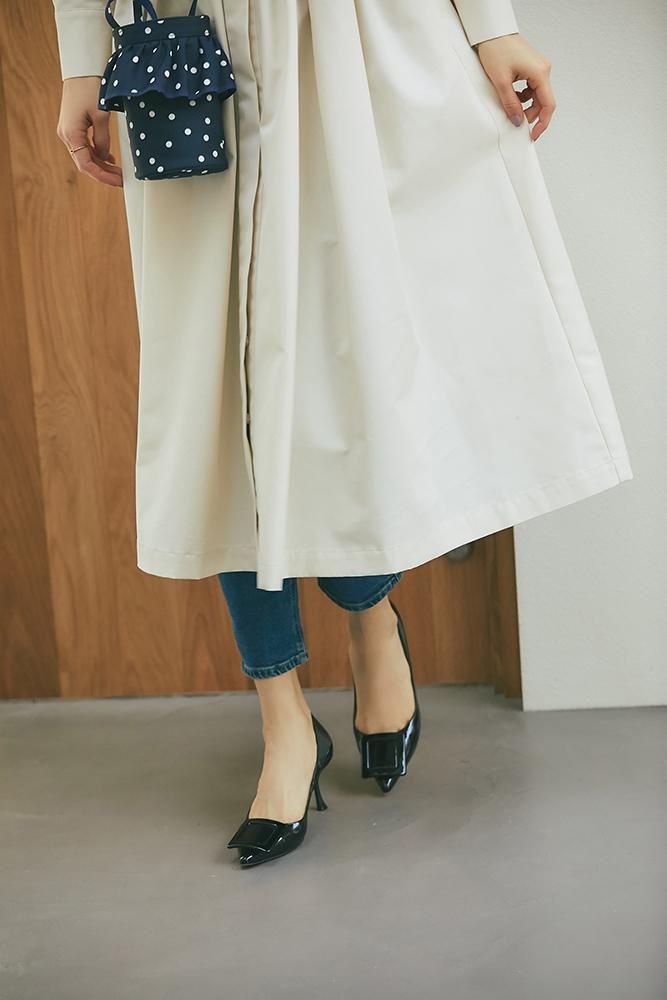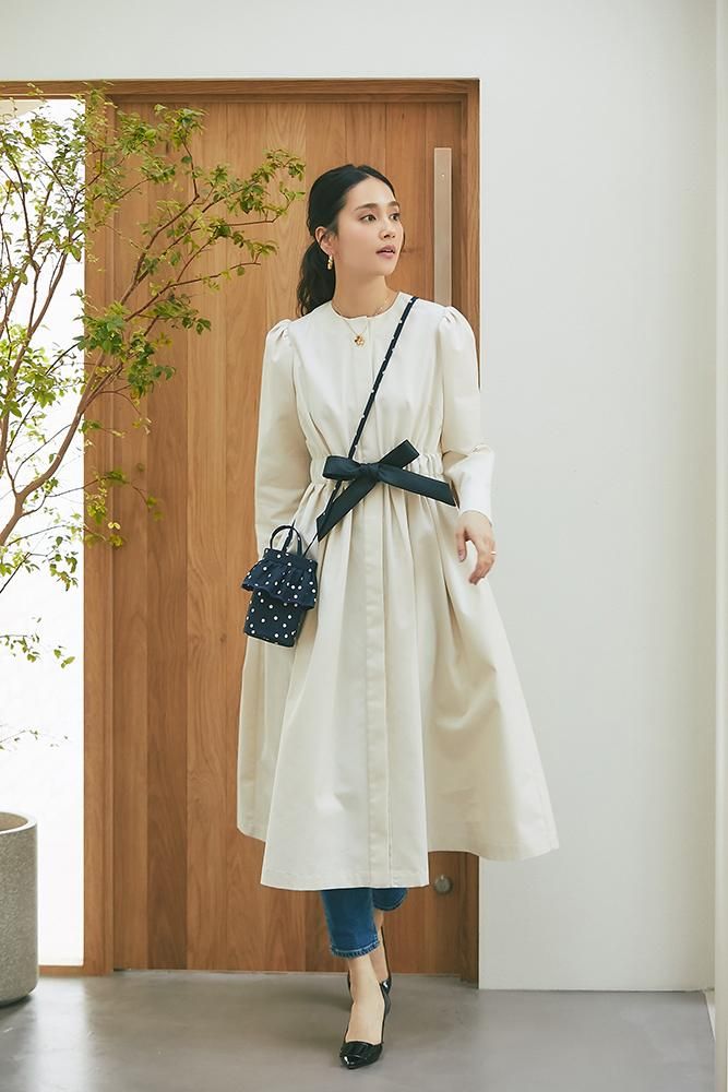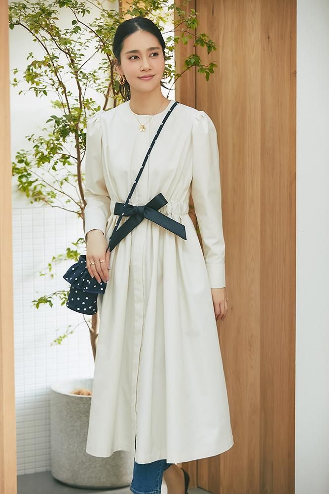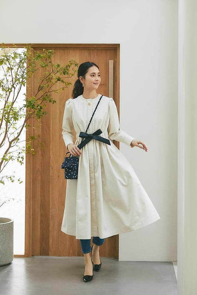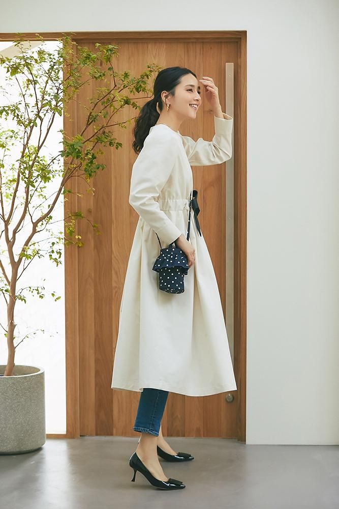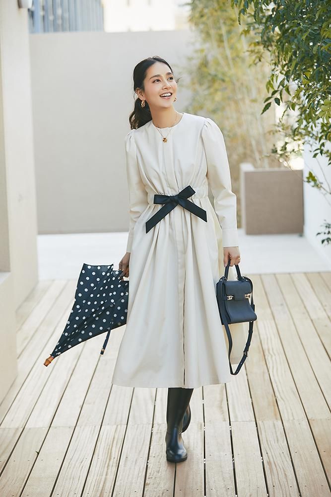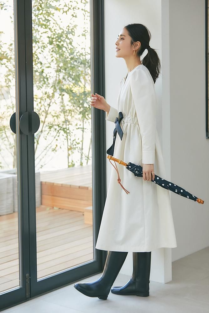 ベージュみのあるオフホワイトなので、雨の日でも気負わず着られます。