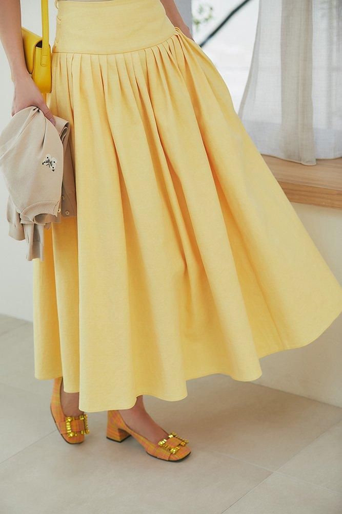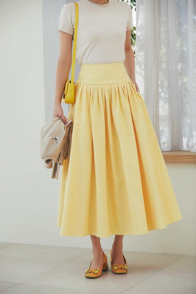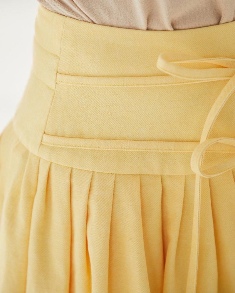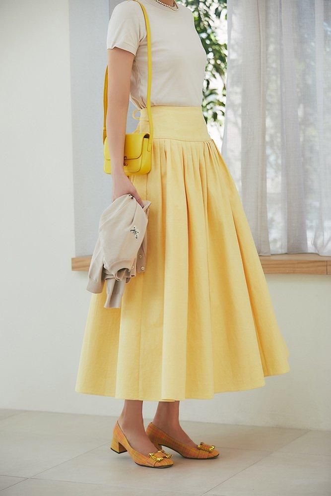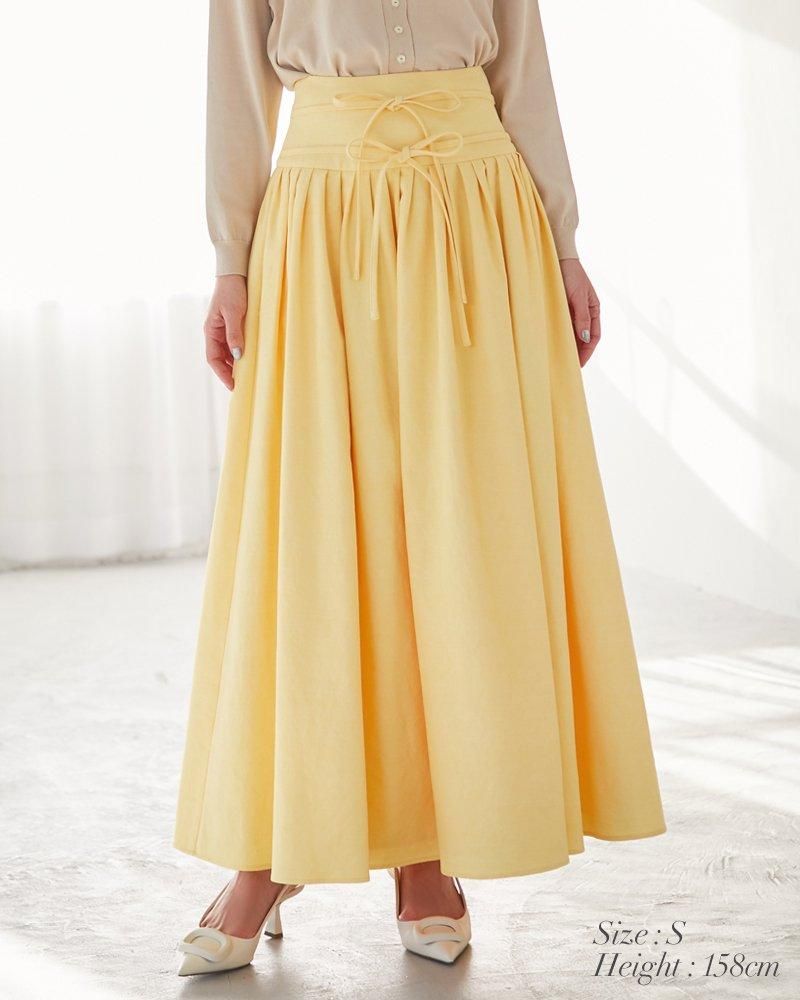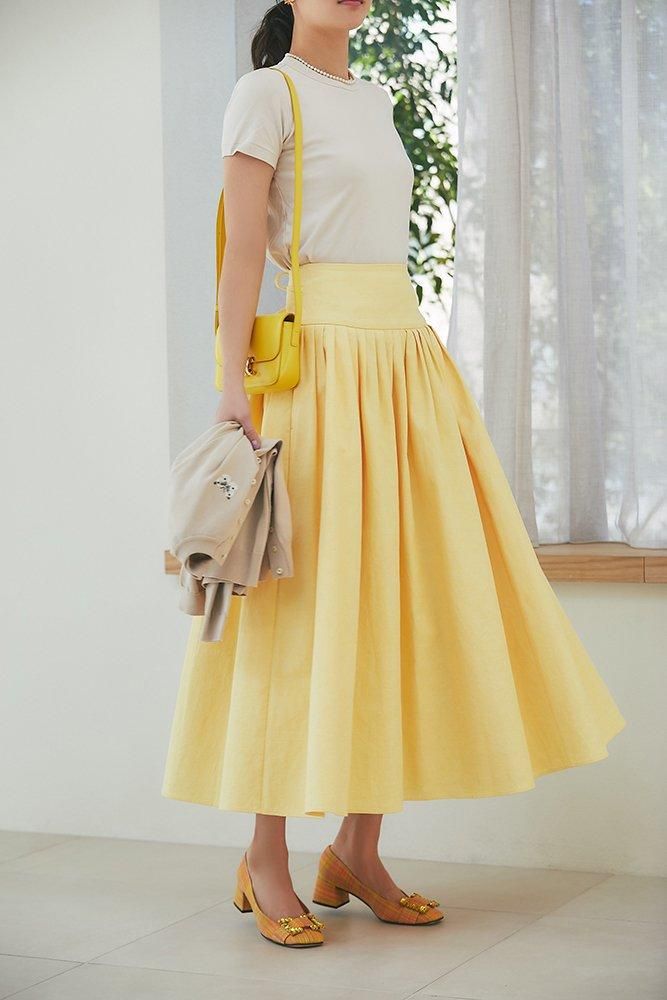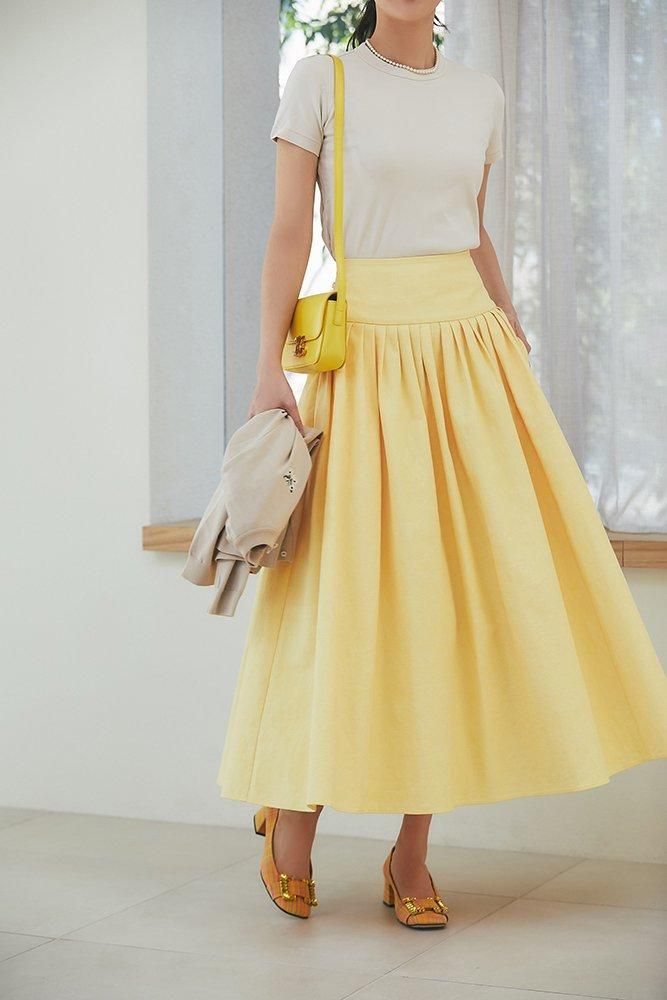 【20%off】ハイウエストタックスカート(ペールイエロー)