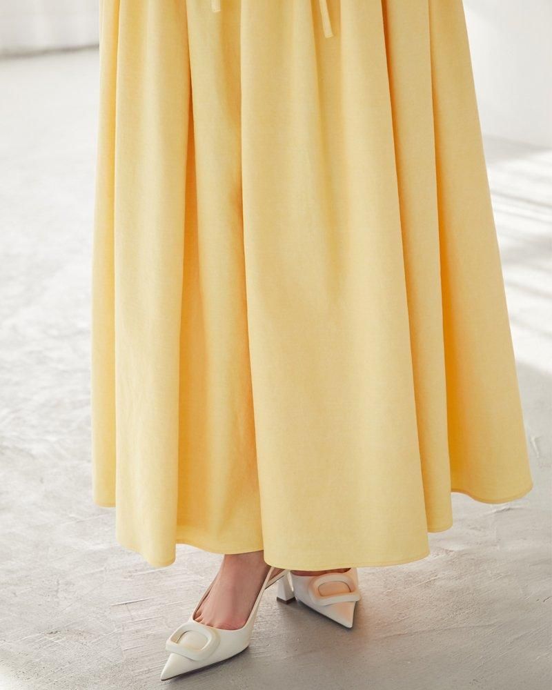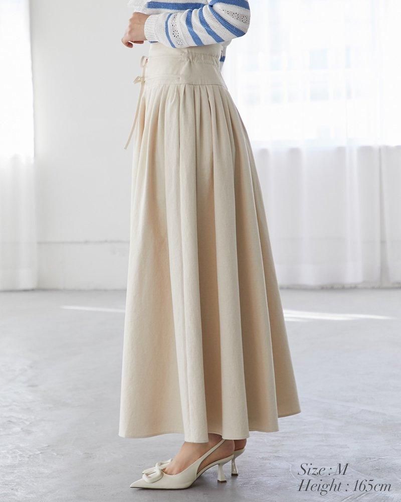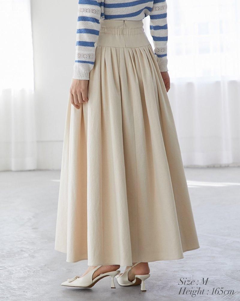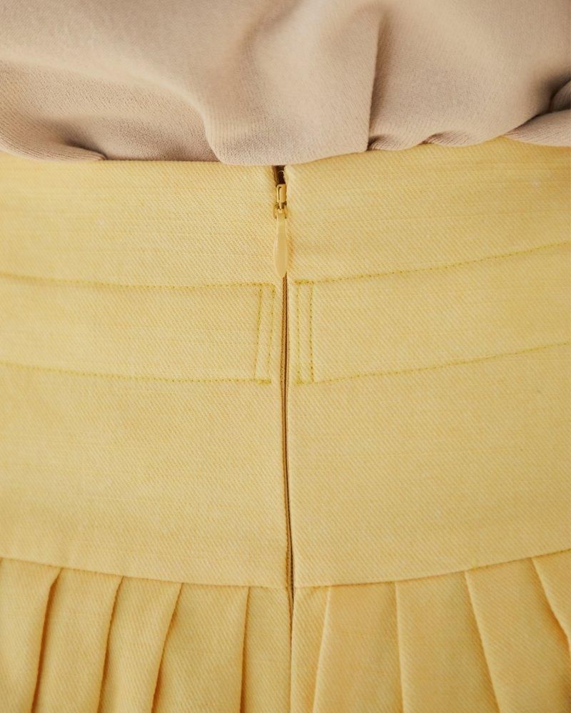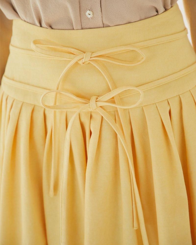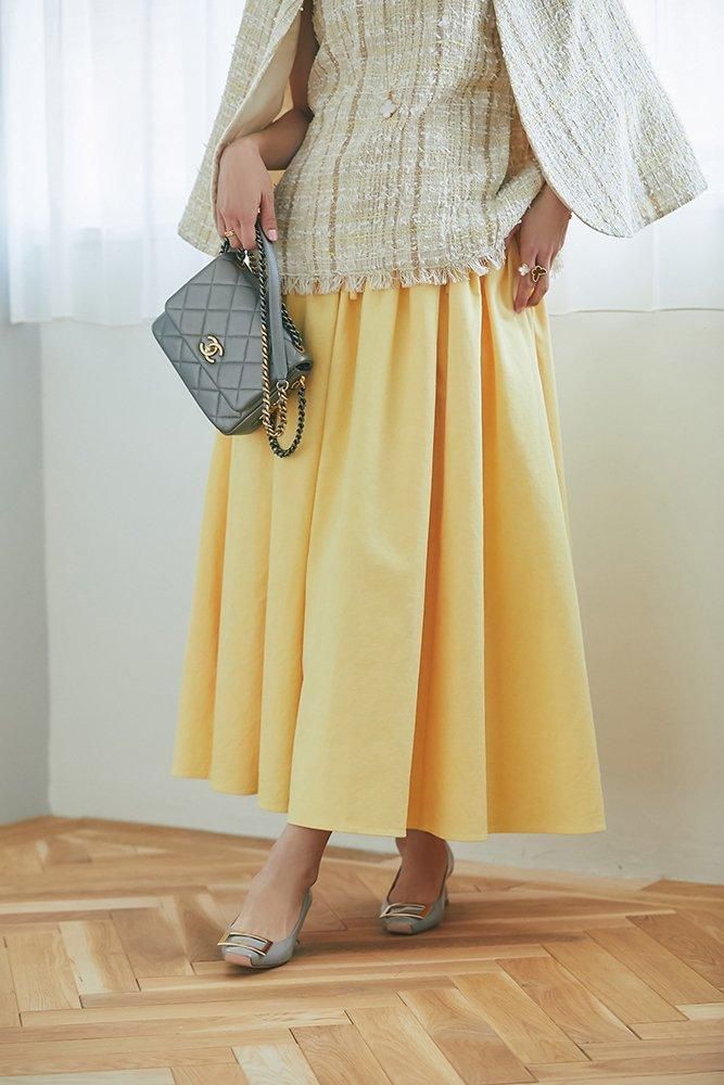 【20%off】ハイウエストタックスカート(ペールイエロー)
