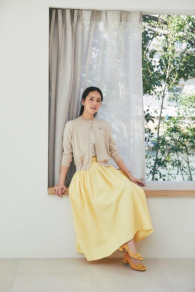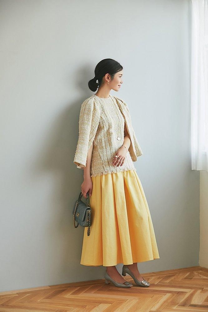 生地をたっぷり使った贅沢なふんわりシルエットはタックでボリュームを出しギャザーよりも甘さを抑えたバランスに。