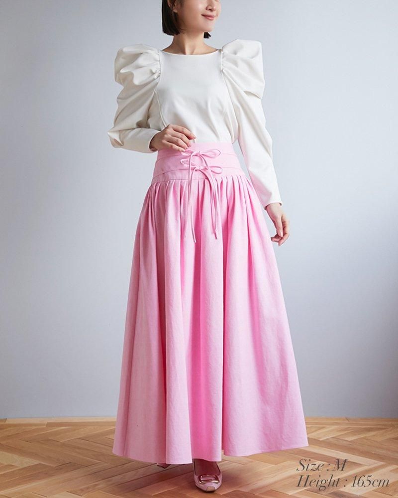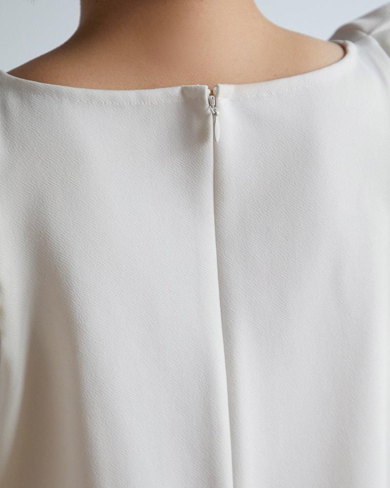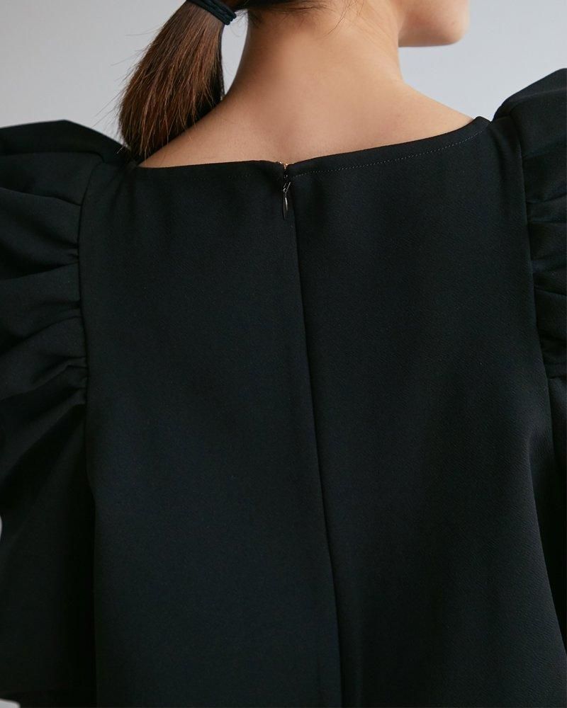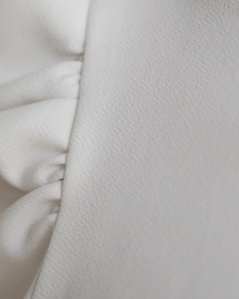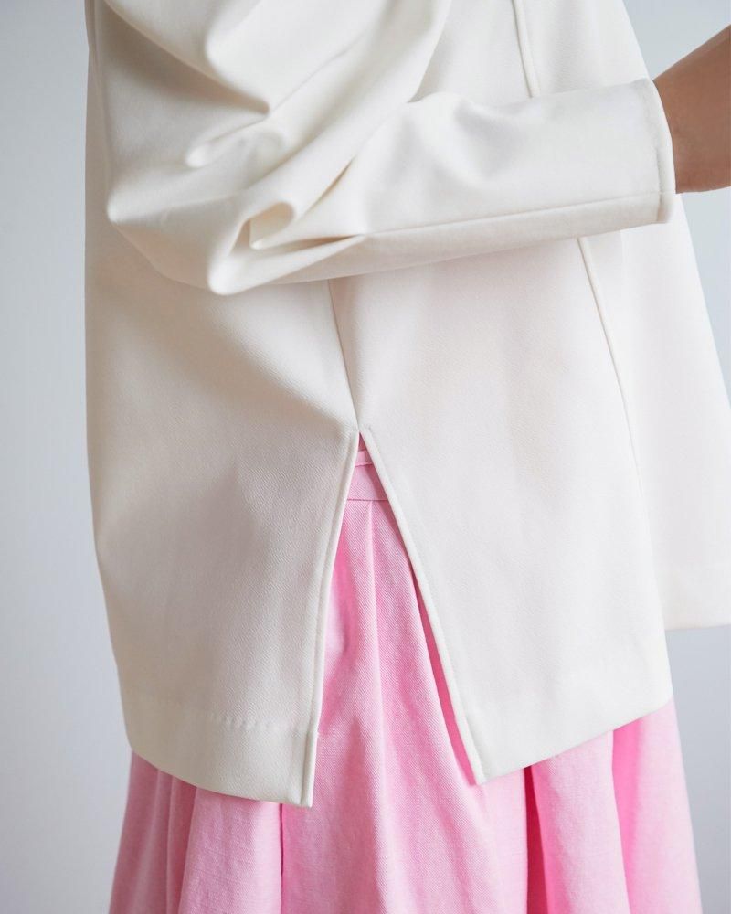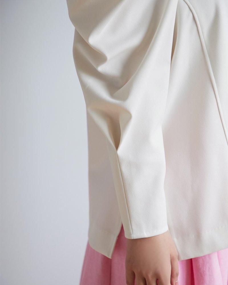 ショルダーラインを内側に入れ、ギャザーを寄せることで肩先が立ち、甘さの中にモード感も漂います。