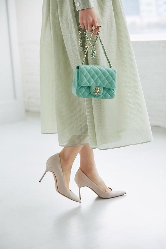 高めのウエスト位置から広がるタックでボリュームを出したスカートは動きのあるエアリーなシルエットを作ります。