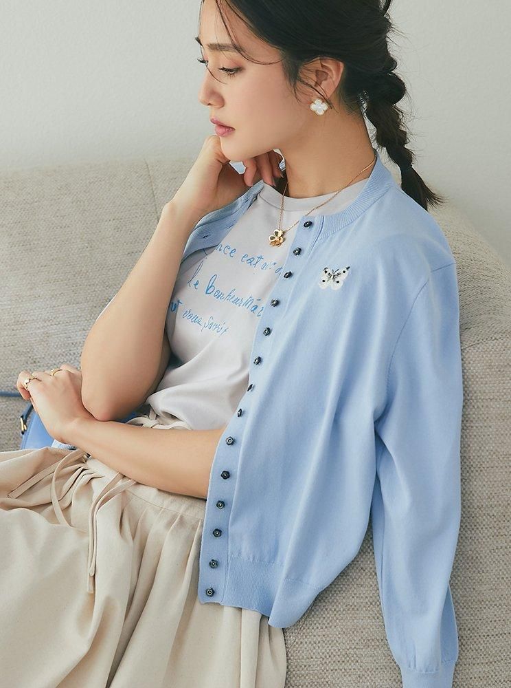 SEVEN TEN で人気の刺繍カーディガンに新しくバタフライモチーフが登場です。