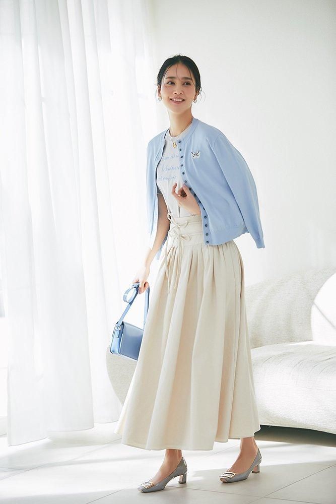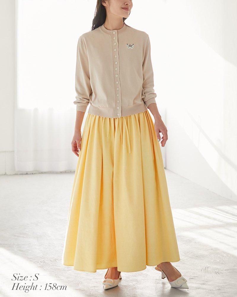小さく並んだお花型のボタンはカラーにより配色を変えて、華やぎを添えるポイントに。