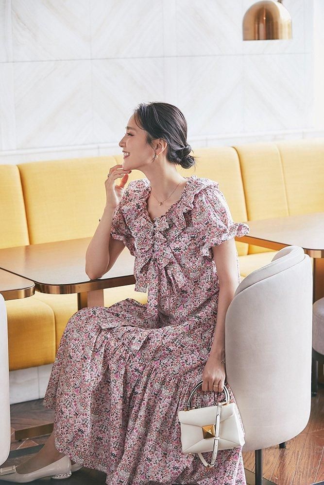 ウエストのリボンは前後で結べ、雰囲気を変えていただけます。
