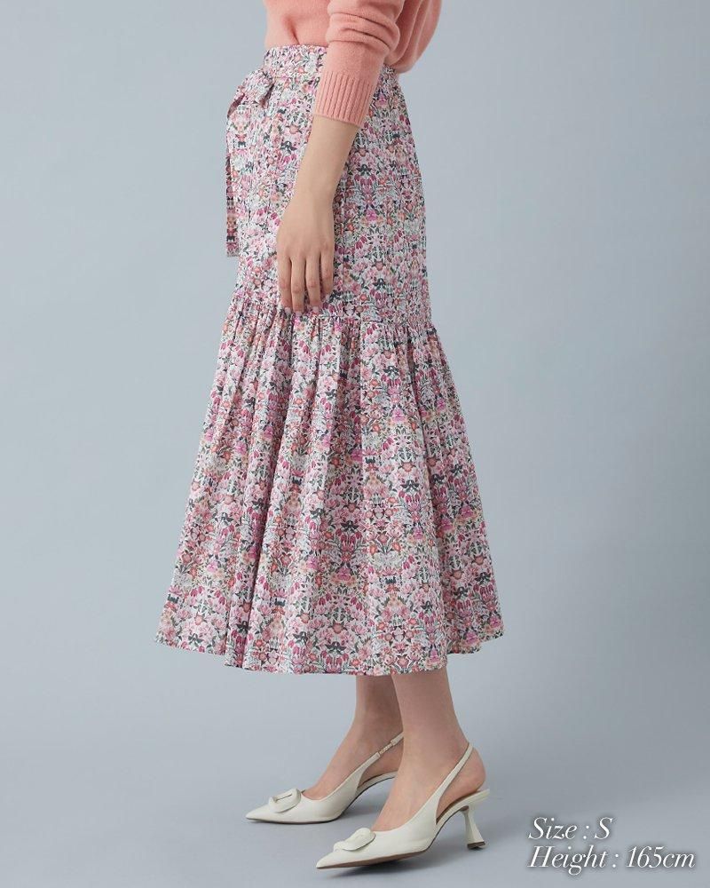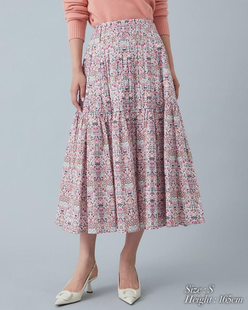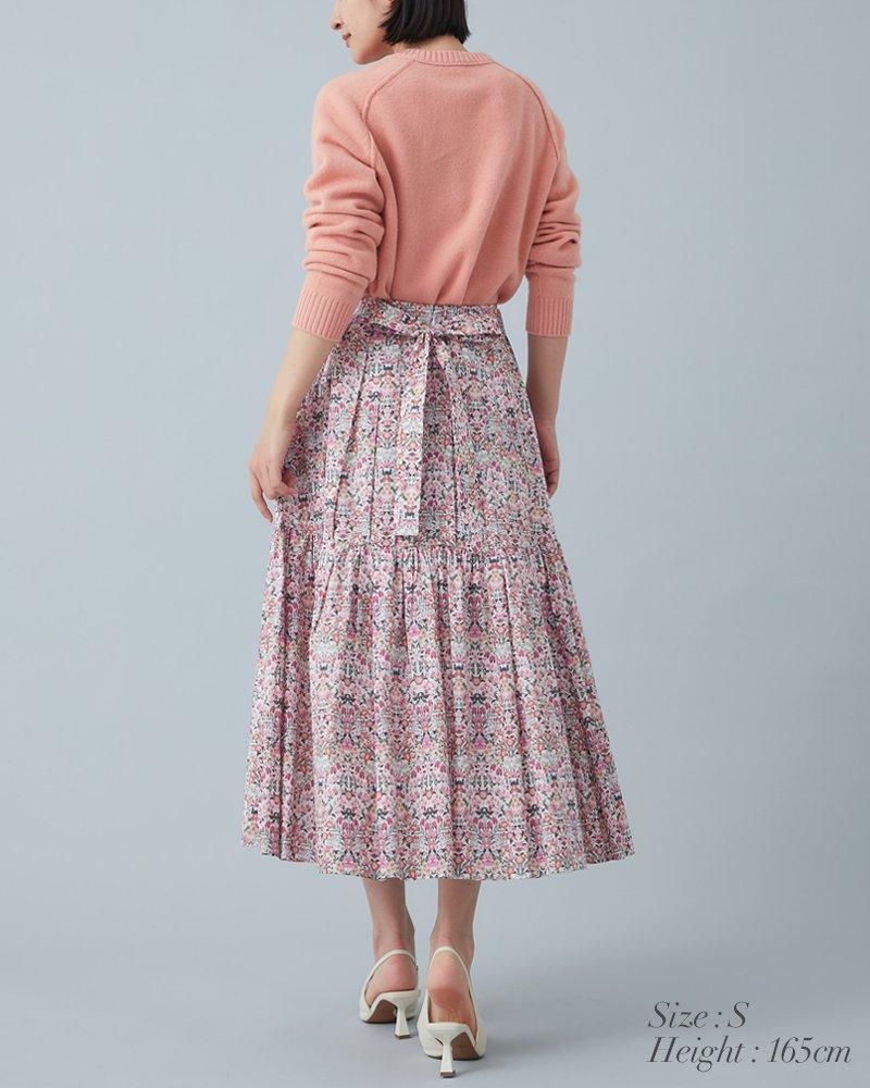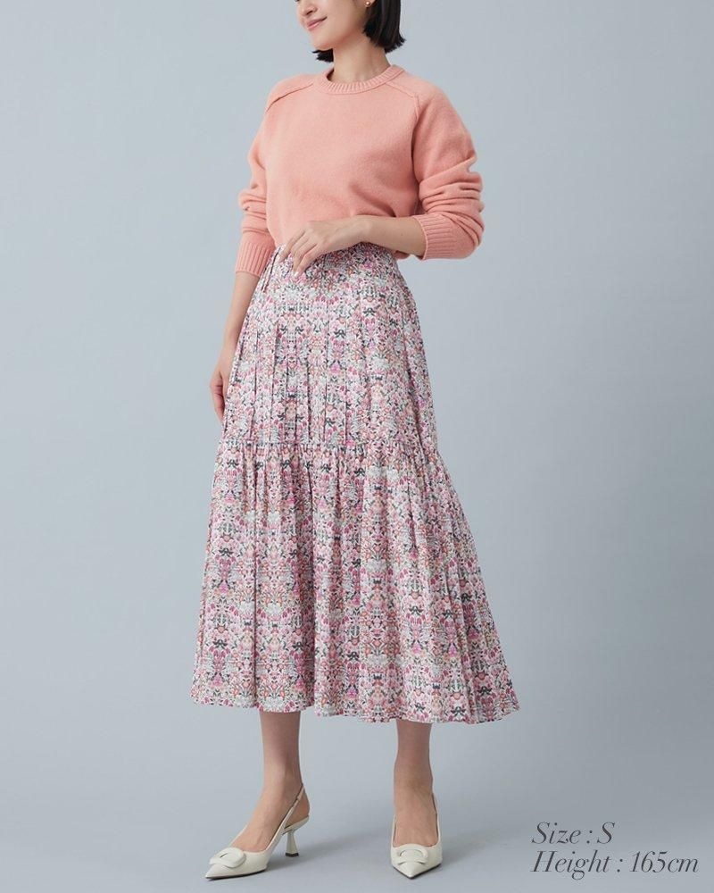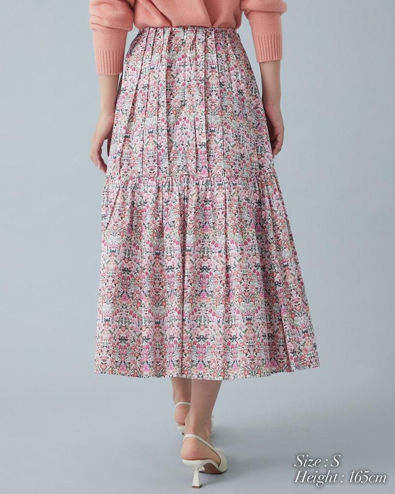 美しい小花柄のリバティプリントをタックとプリーツを組み合わせ、リズム感とデザイン性のあるプリーツスカートに仕立てました。
