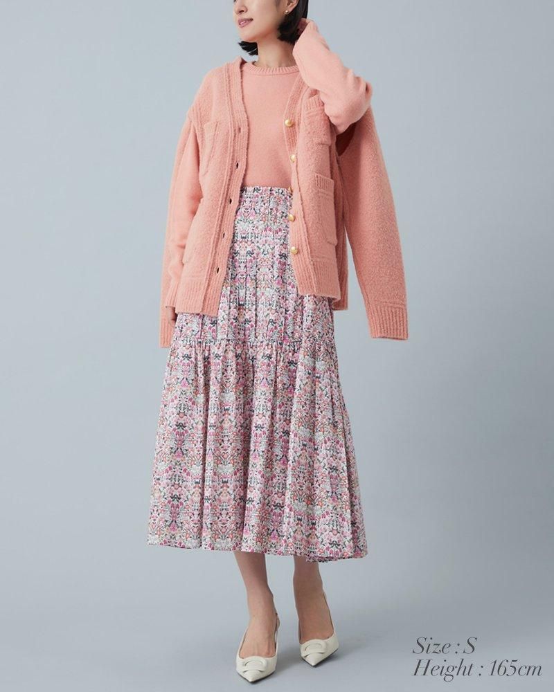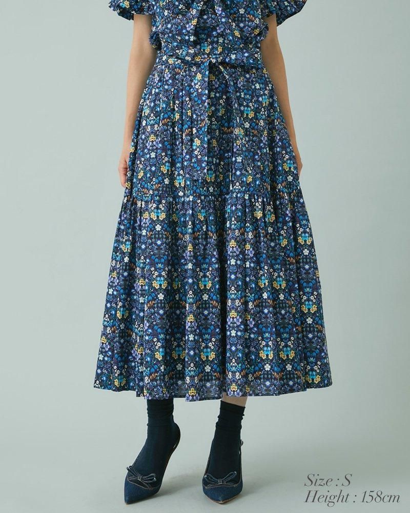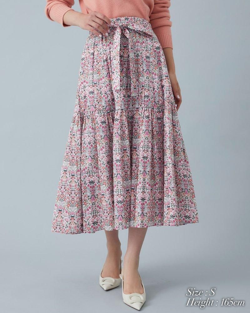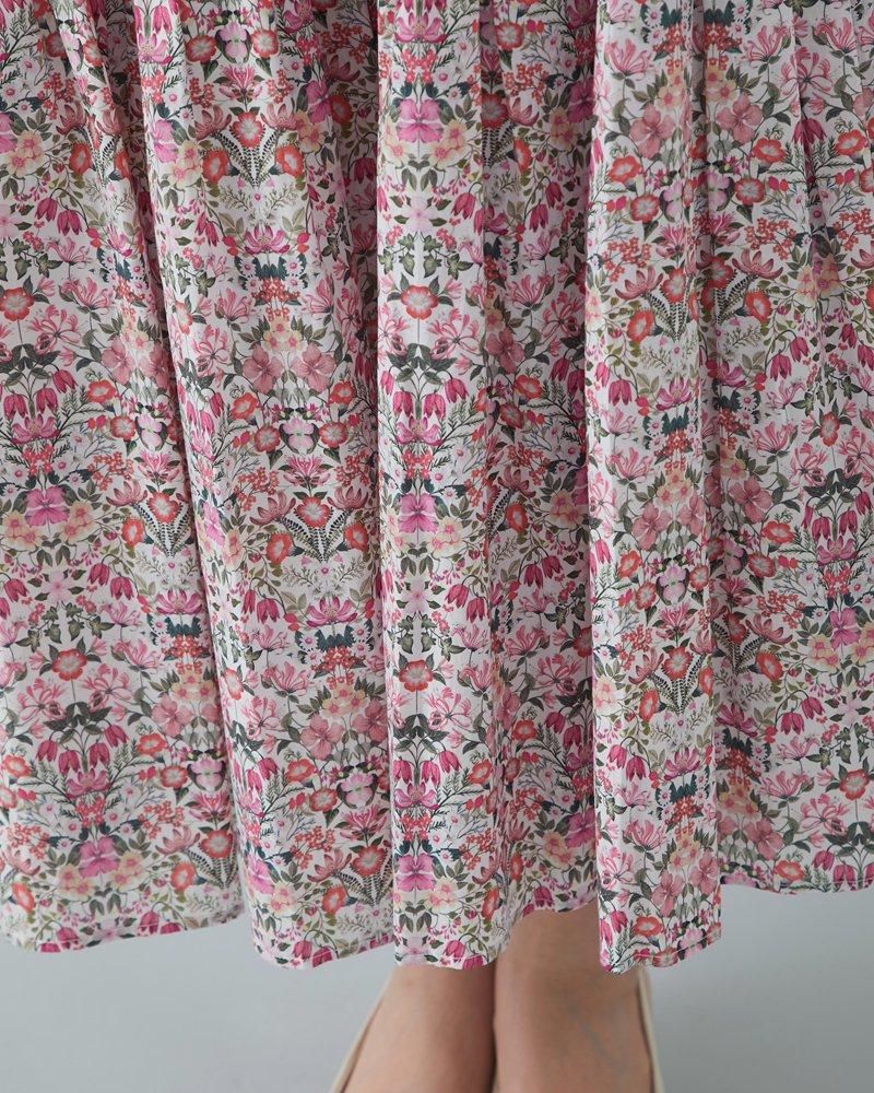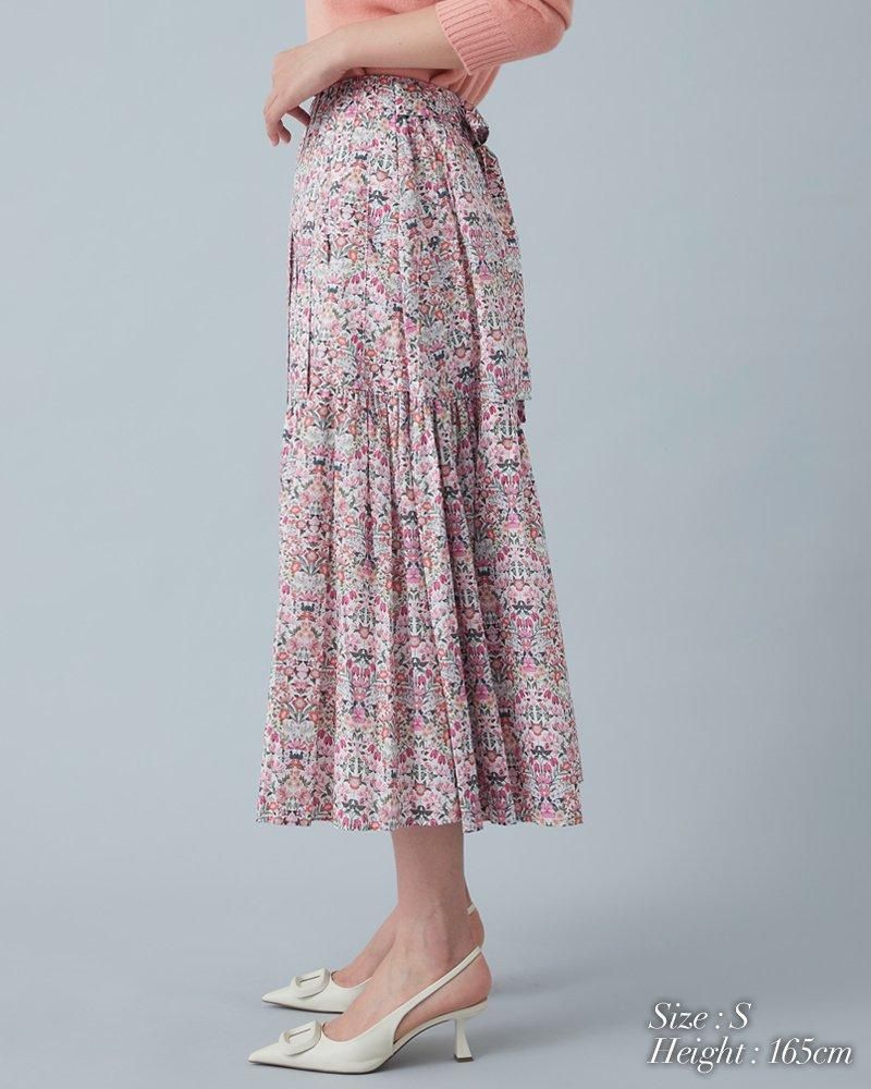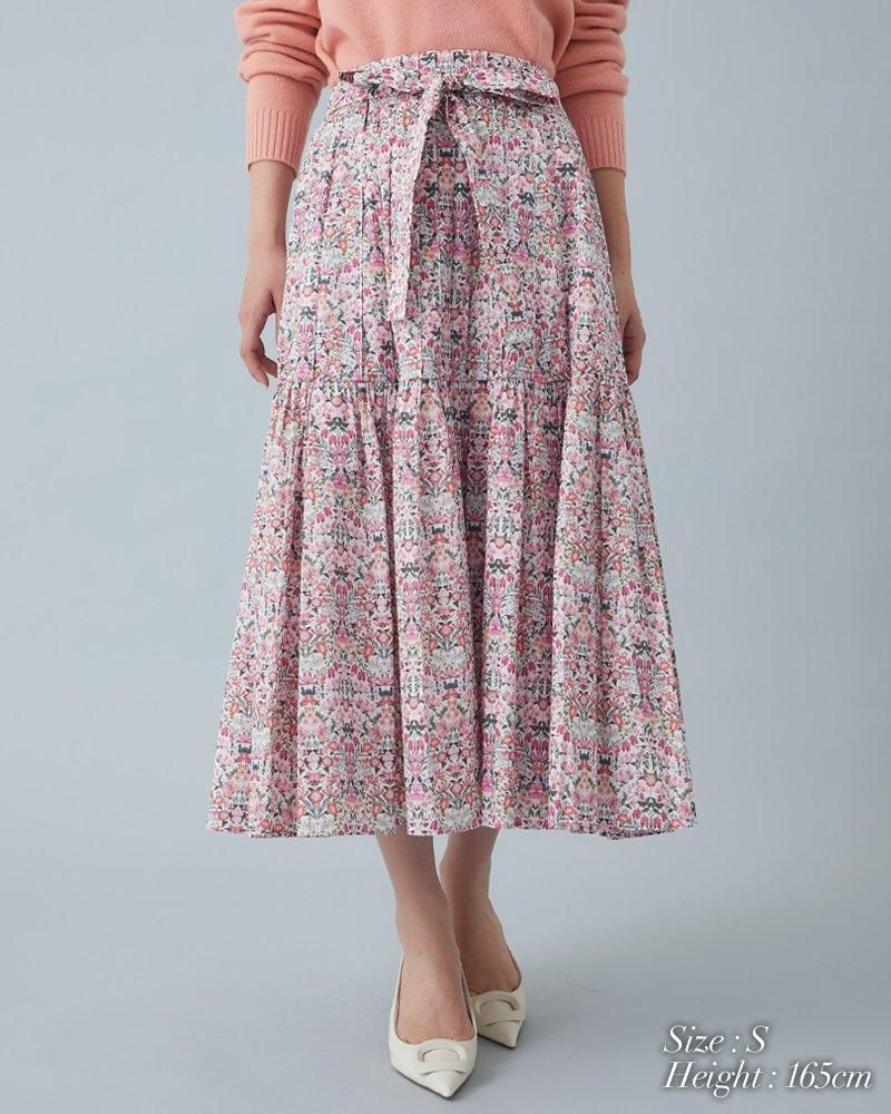 美しい小花柄のリバティプリントをタックとプリーツを組み合わせ、リズム感とデザイン性のあるプリーツスカートに仕立てました。