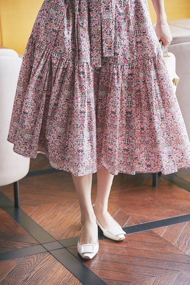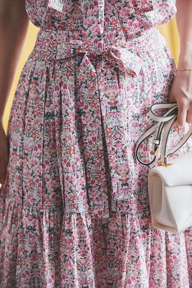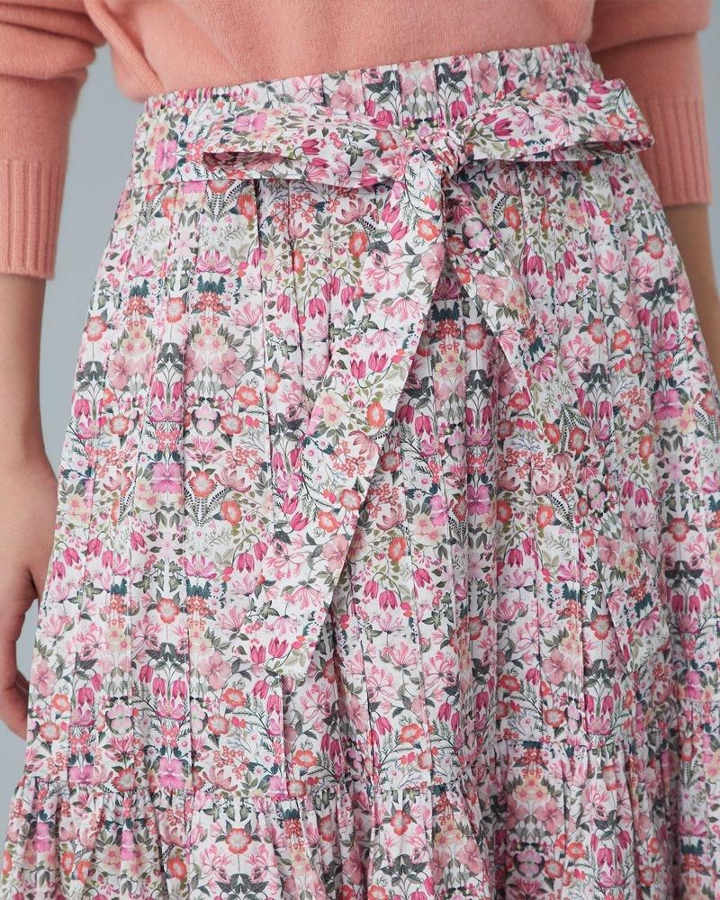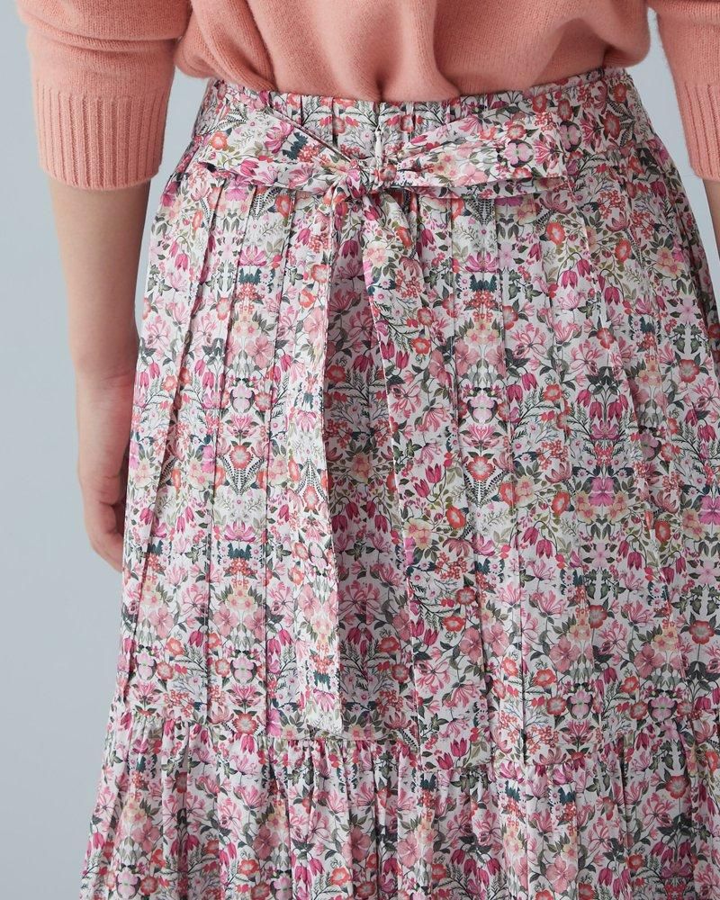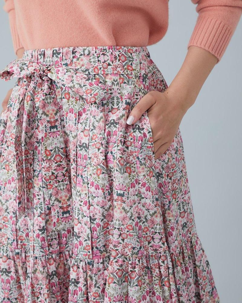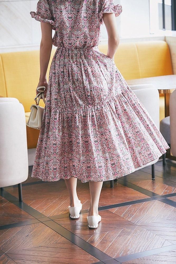 美しい小花柄のリバティプリントをタックとプリーツを組み合わせ、リズム感とデザイン性のあるプリーツスカートに仕立てました。