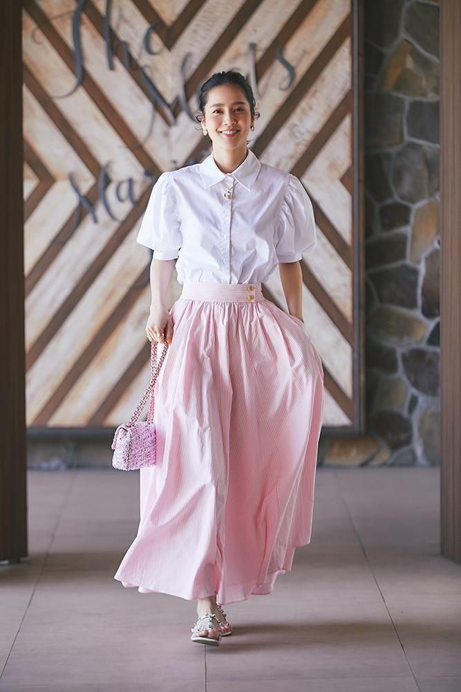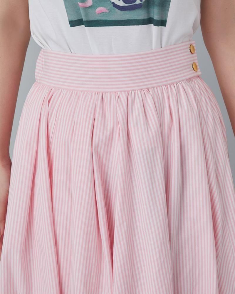 夏の地中海にインスピレーションを得た、清涼感のあるストライプ柄を使用したスカート。
