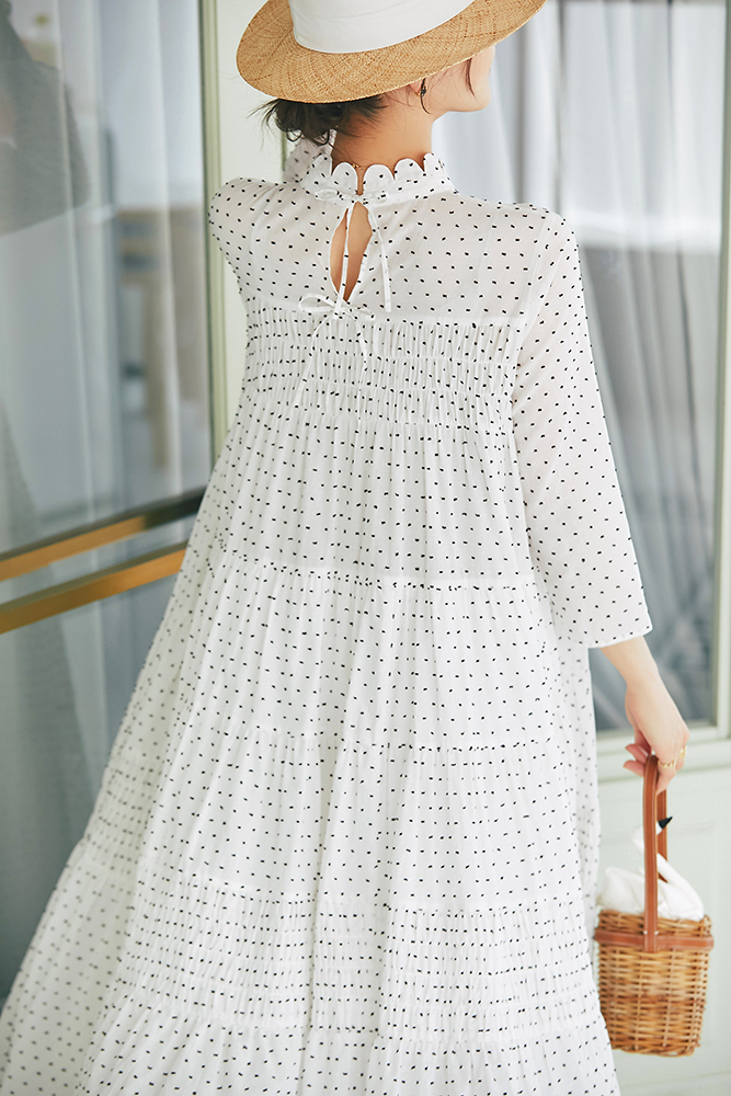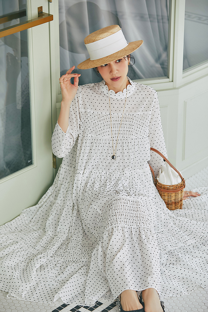 10 ドビーティアードロングワンピース(ホワイト×ブラック) ¥48,400