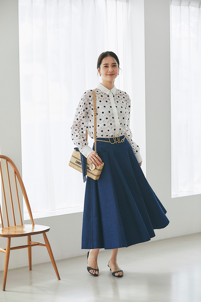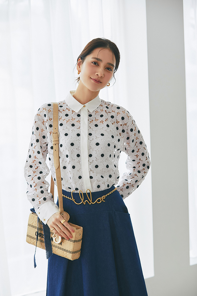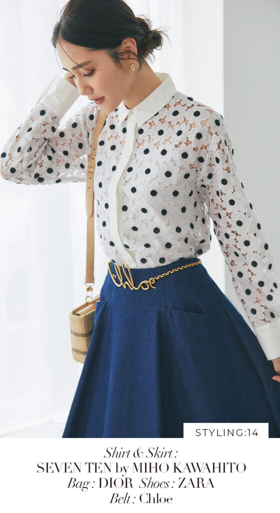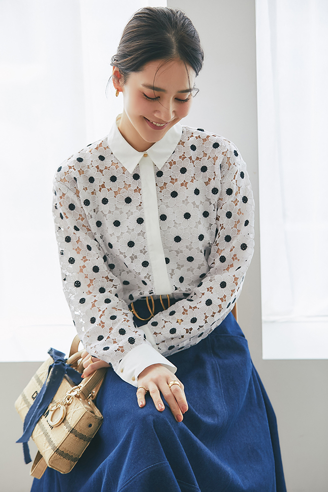 14 マーガレットレースシャツ(ネイビー) ¥37,400 / スカート 4月発売予定