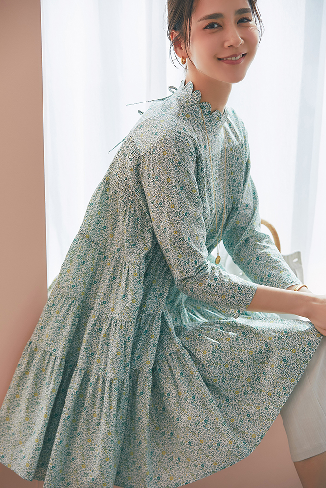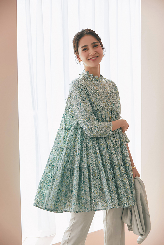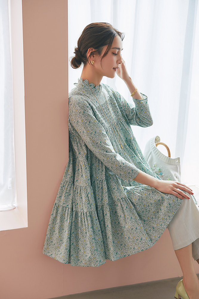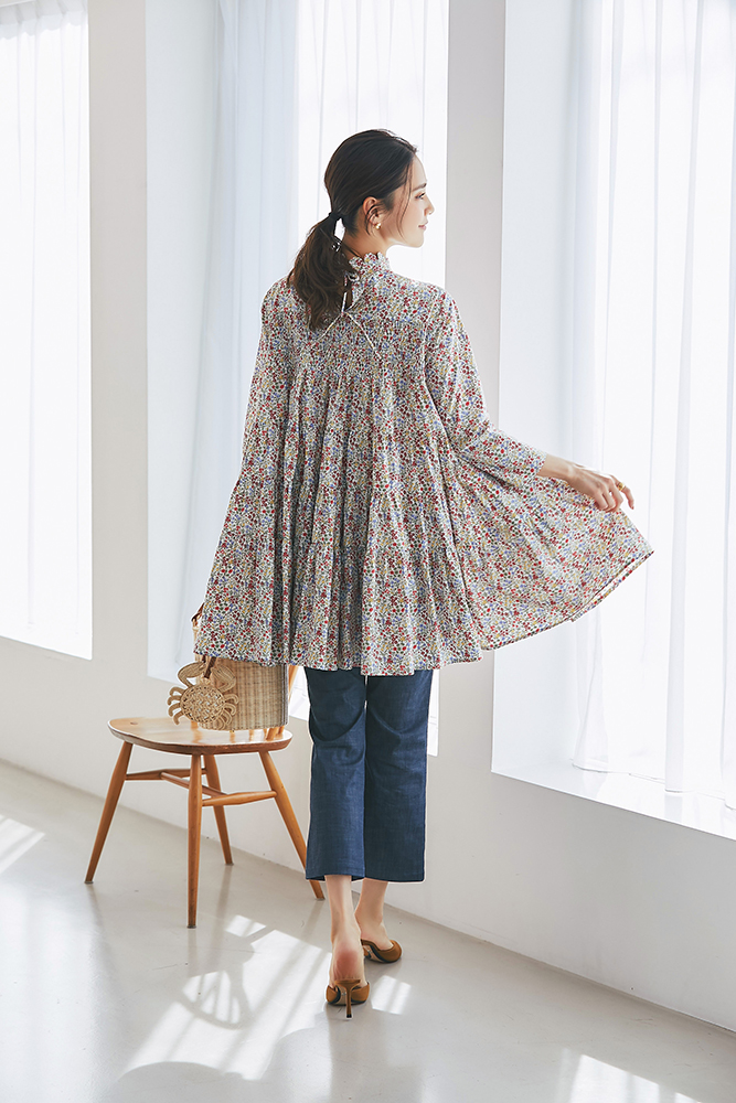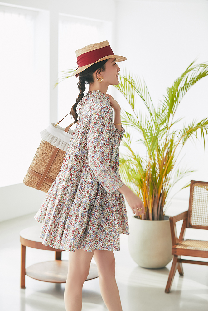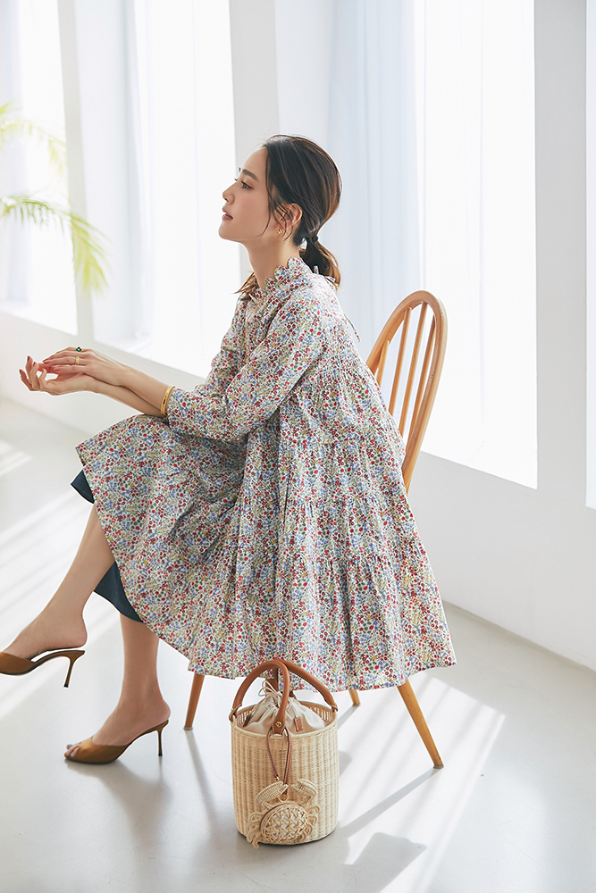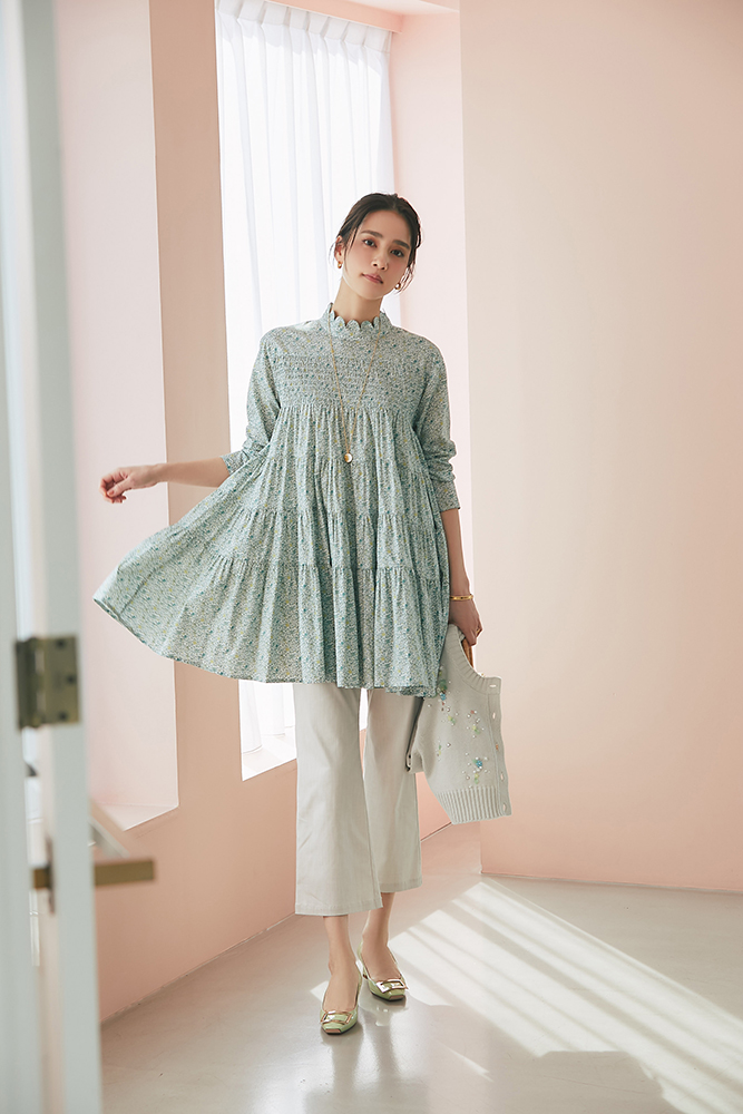 21 リバティシャーリングティアードチュニック(マルチ) ¥44,000 / バッグ 3月発売予定