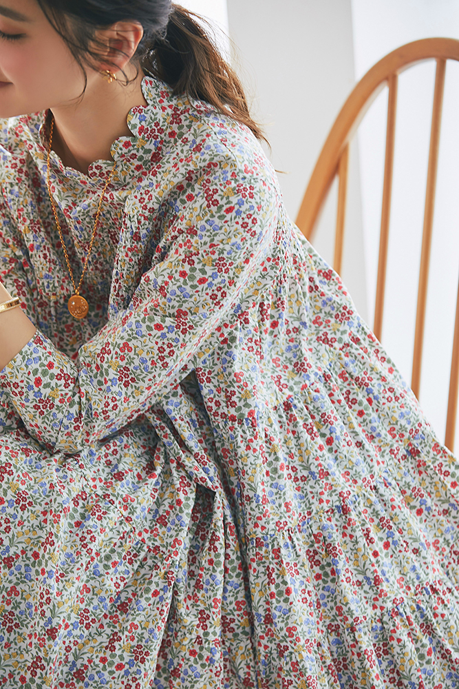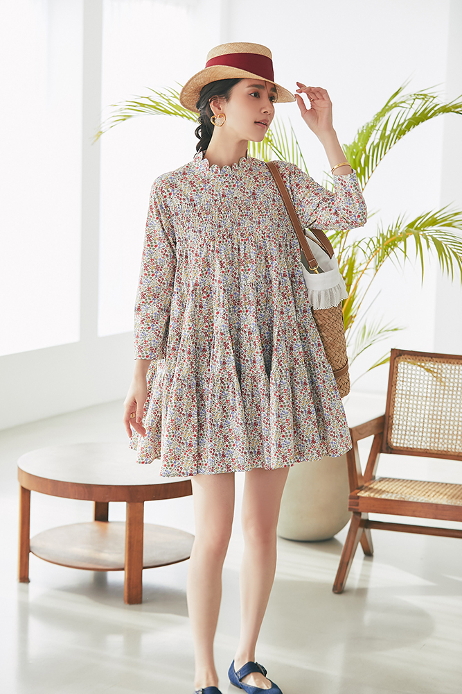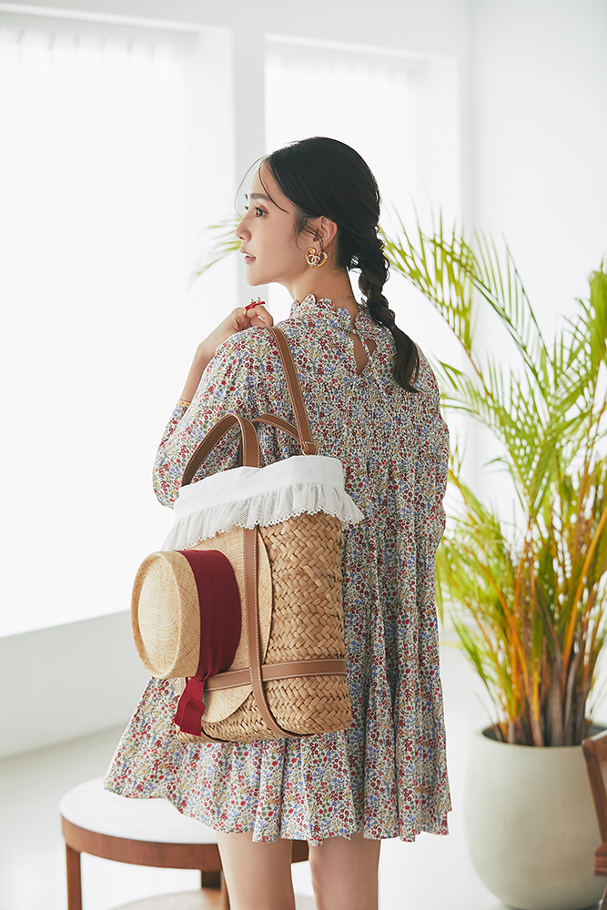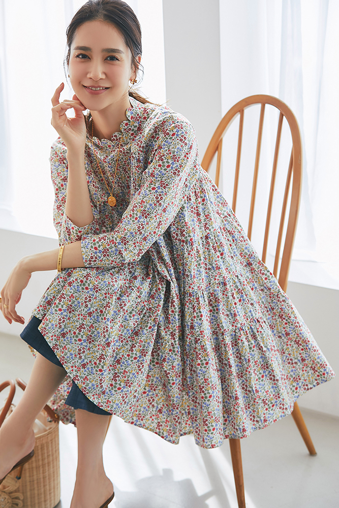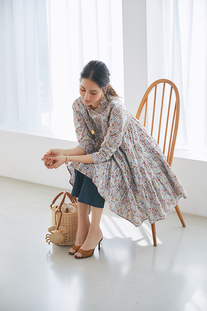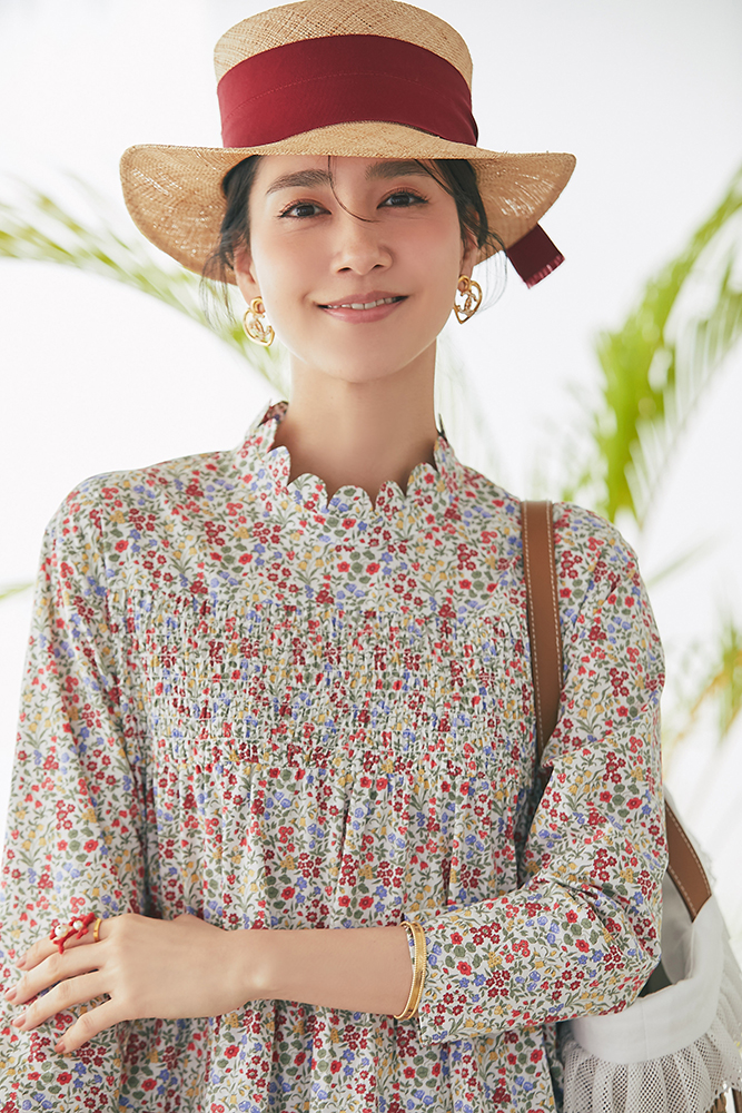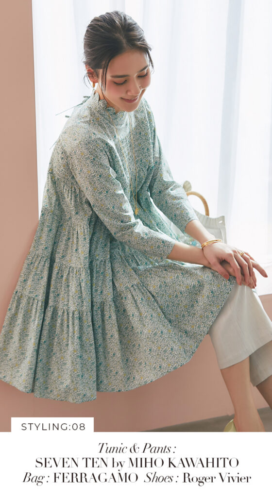21 リバティシャーリングティアードチュニック(マルチ) ¥44,000 / バッグ 3月発売予定