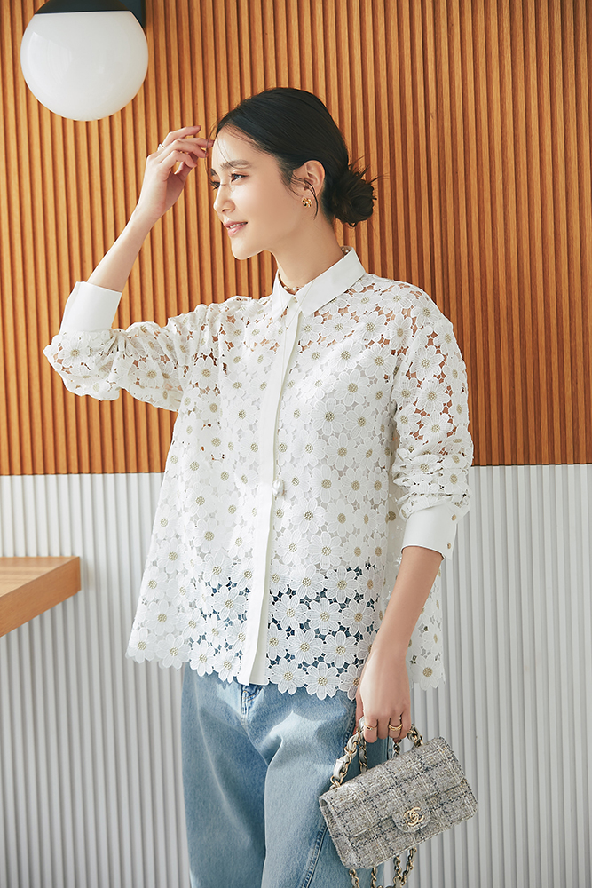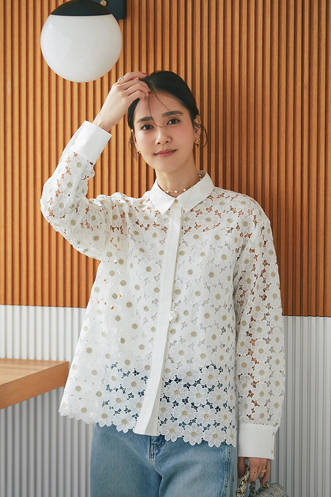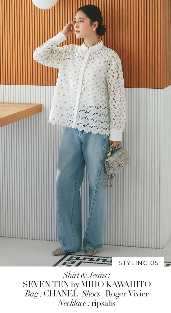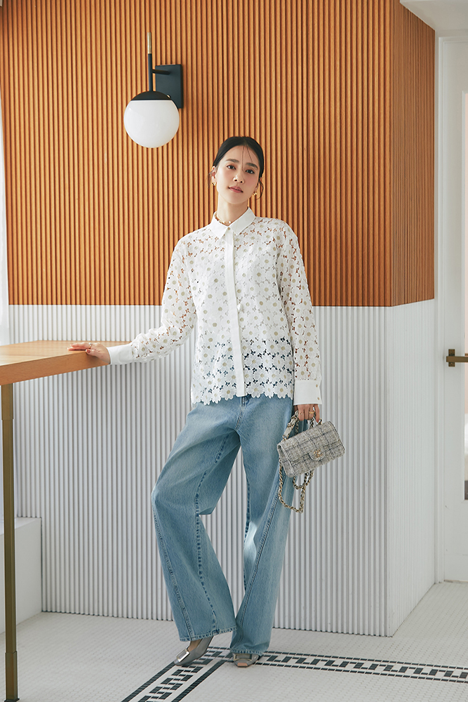 5 マーガレットレースシャツ(ゴールド) ¥37,400 / デニム 3月発売予定