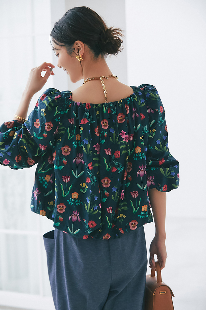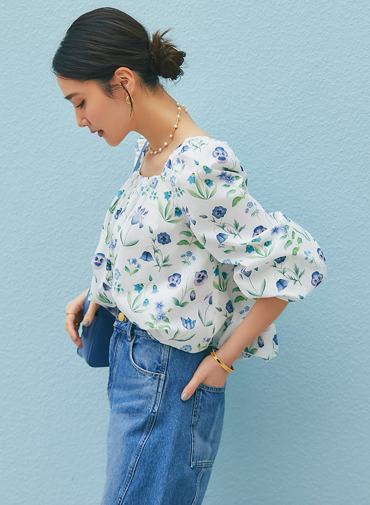 12 リバティフローラルバルーンブラウス(ブルー) ¥37,400 / デニム 3月発売予定