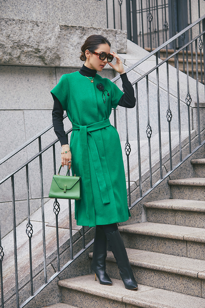 1 モチーフジレワンピース(グリーン) ¥44,000 / ニット 11月発売予定