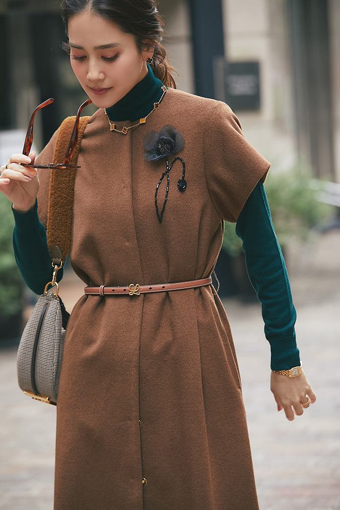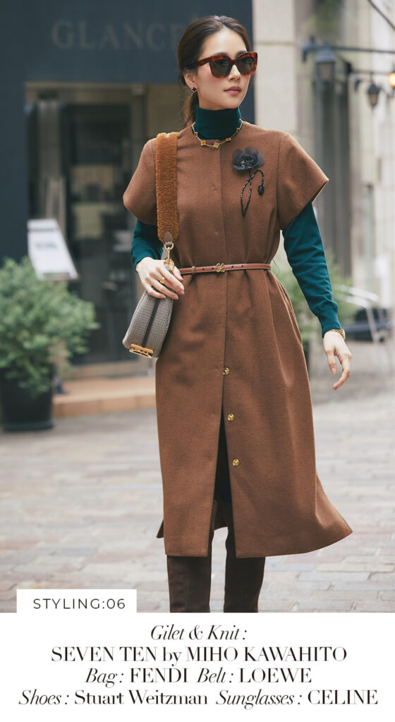 6 モチーフジレワンピース(ブラウン) ¥44,000 / ニット 11月発売予定