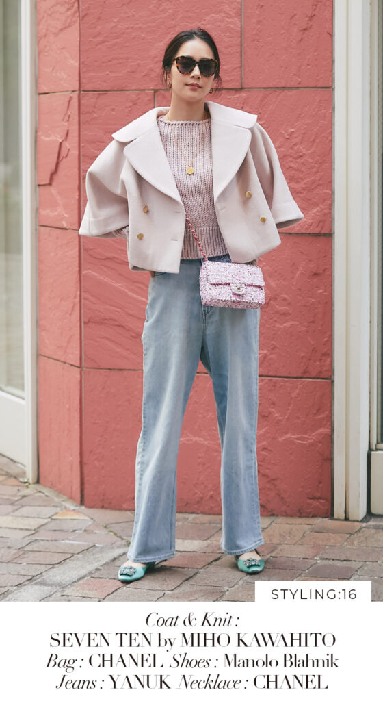 16 ダブルブレストショートコート(ピンク) ¥44,000 / ニット 11月発売予定