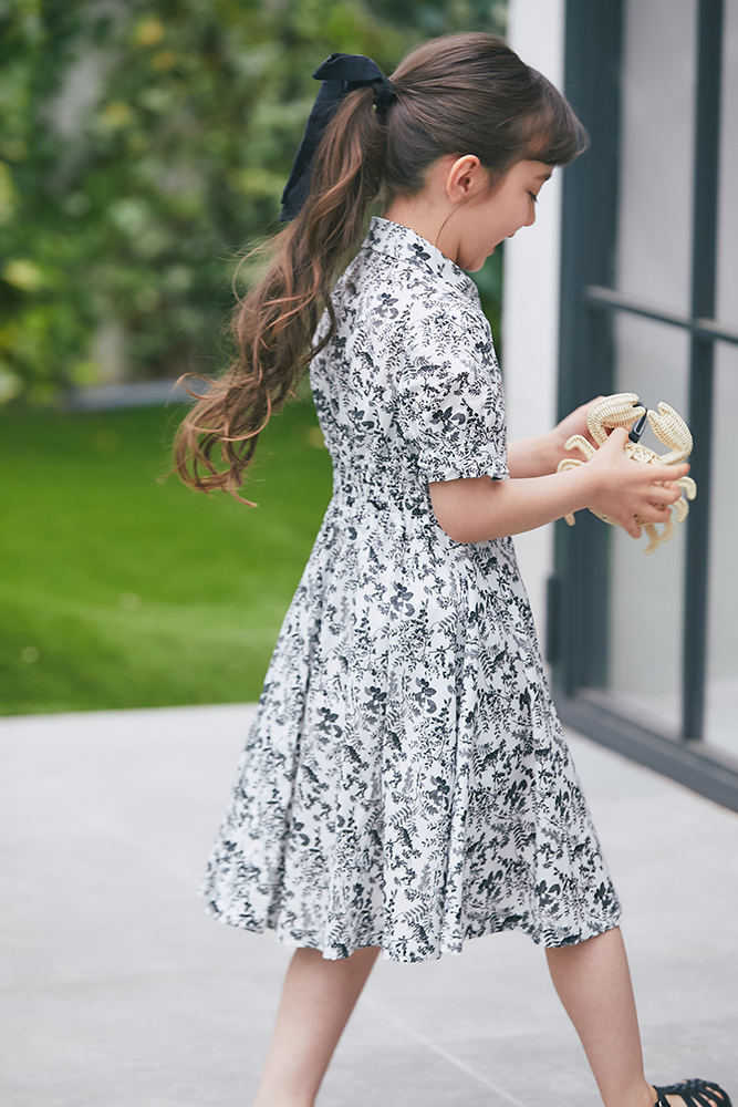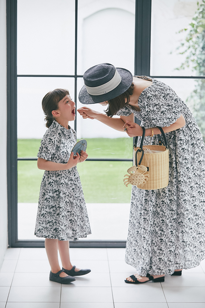 SEVEN TENのシグネチャープリント、“木の実柄”シリーズに新作が登場します。今シーズンはワンピース・KIDSワンピース・シャツ・スカートの4アイテムがラインナップ。カラー展開では、シックなブラックが初登場。スタイリングやディテール、KIDSワンピースのサイズ感をご紹介します。