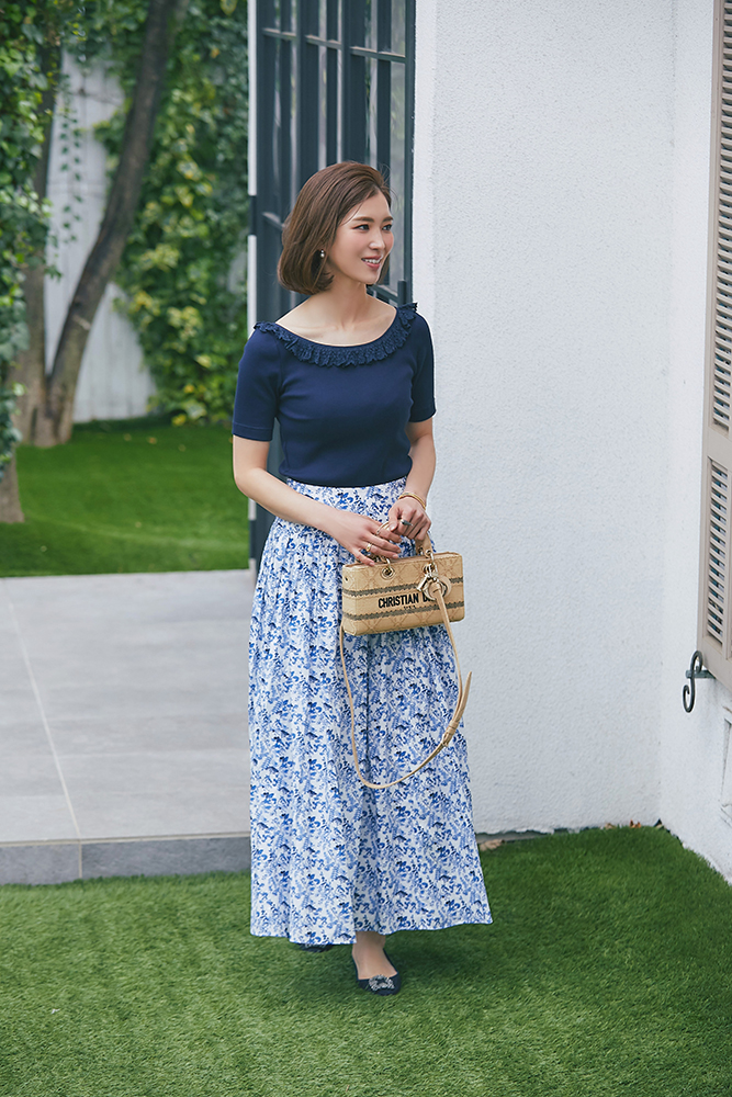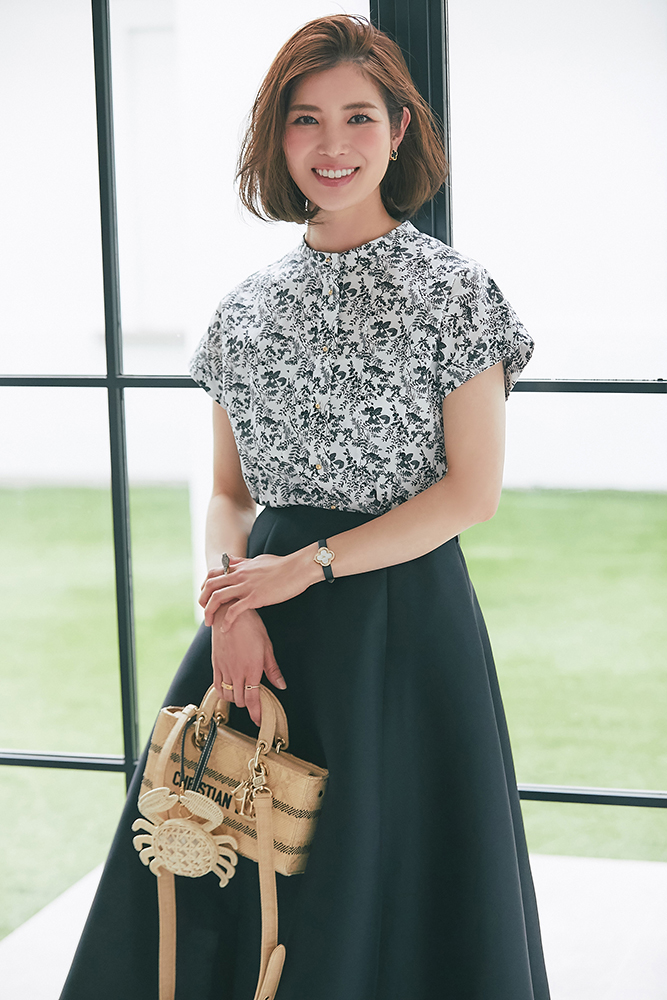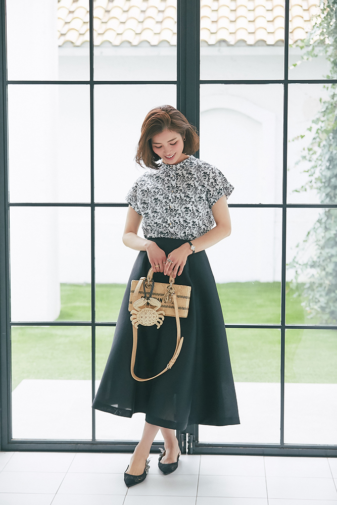 トップス:SEVEN TEN by MIHO KAWAHITO バッグ:DIOR 靴:Manolo Blahnik