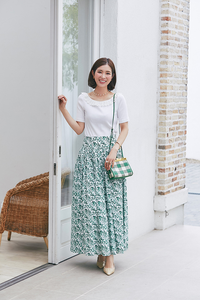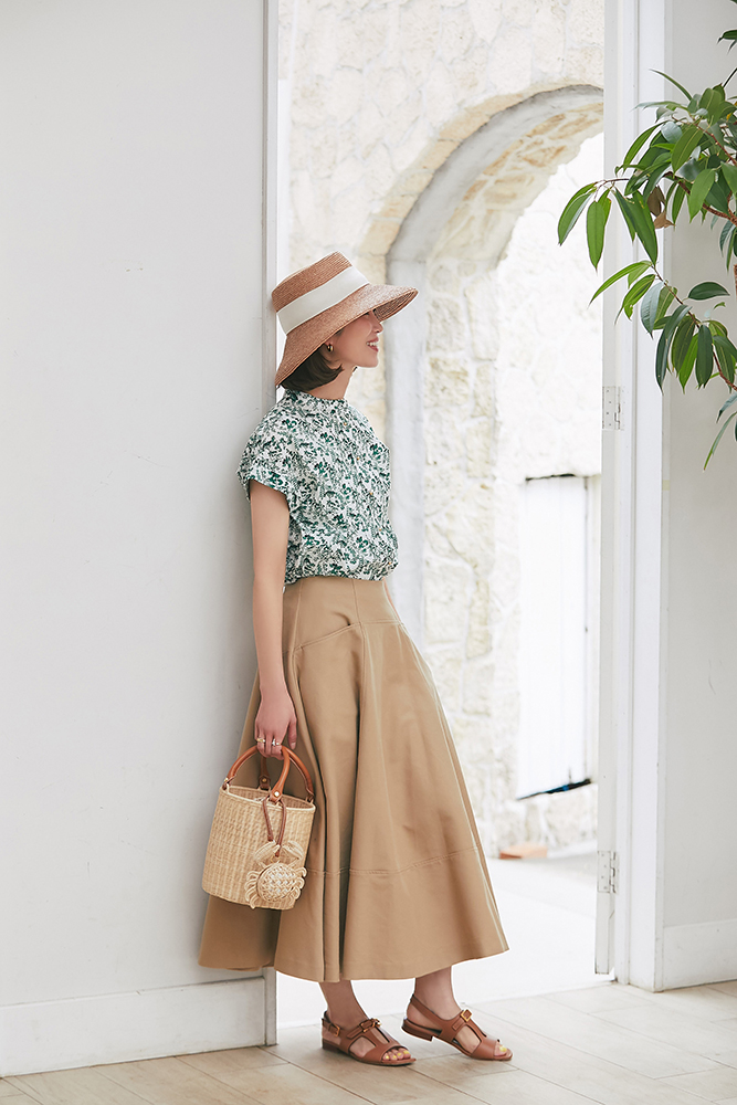 スカート&バッグ:SEVEN TEN by MIHO KAWAHITO 靴:Serigio Rossi ハット:Helen Kaminski